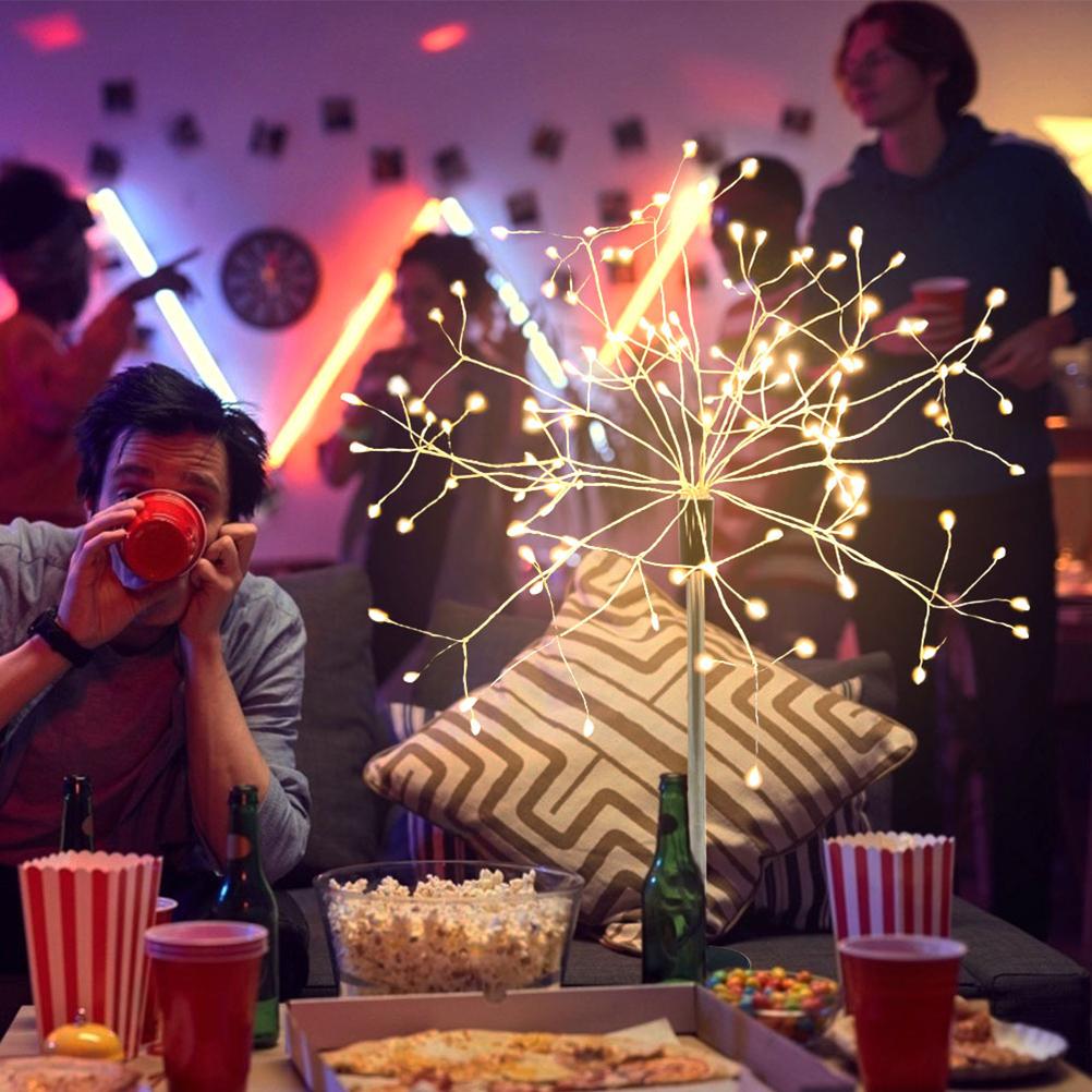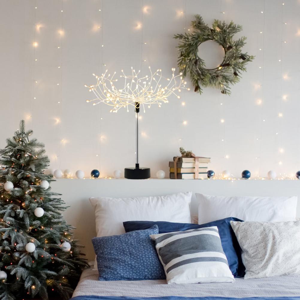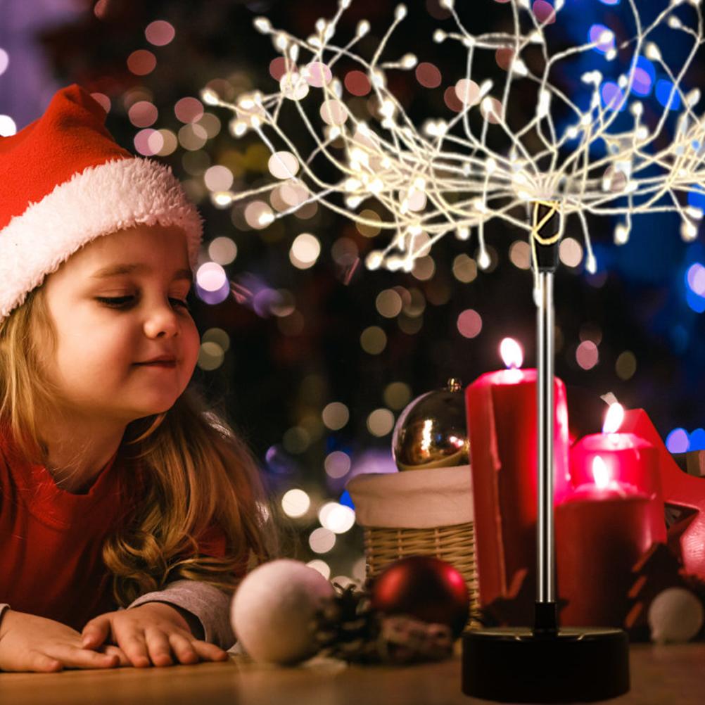 2. Настольный светильник в форме дерева фейерверков: 8 режимов комбинации, волны, последовательности, медленный светильник, погоня/вспышка, медленное распад, вспышка/вспышка и всегда. Красивая свадьба, Пасха, День Святого Валентина, Рождество и другие праздники.