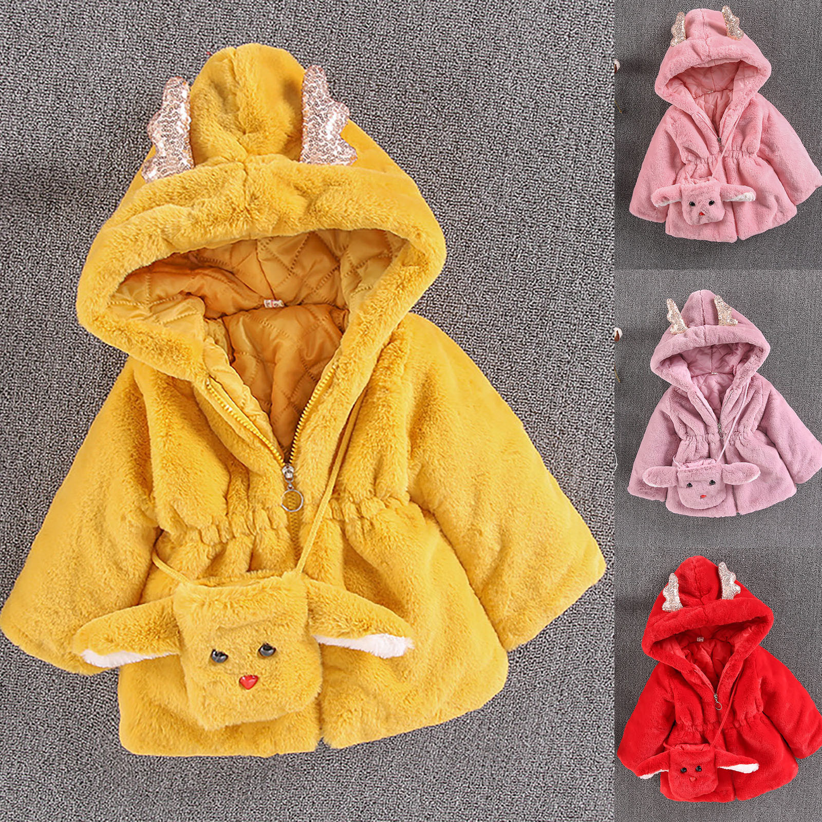 Детское зимнее флисовое пальто; Детская куртка с милыми ушками; Верхняя одежда с капюшоном; Плотная теплая удобная верхняя одежда на молнии + сумка