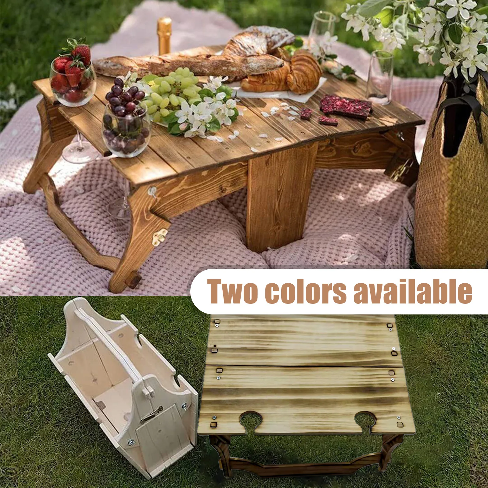 Этот портативный стол для пикника для вина ручной работы незаменим для всех любителей вина. Идеально подходит для фестивалей вина на открытом воздухе, семейных пикников, кемпинга, пляжей или просто провести тихий вечер на вашем заднем дворе!