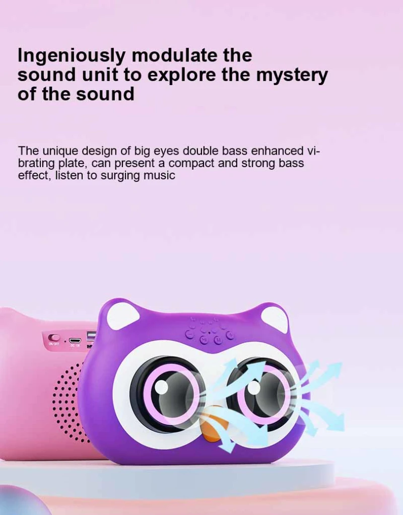 ● Оригинальная модуляция звукового блока, исследуйте тайну звука, большие глаза и уникальный дизайн, двойной усилитель басов, вибрационная пластина, которая может представить компактный и сильный эффект басов и слушать музыку