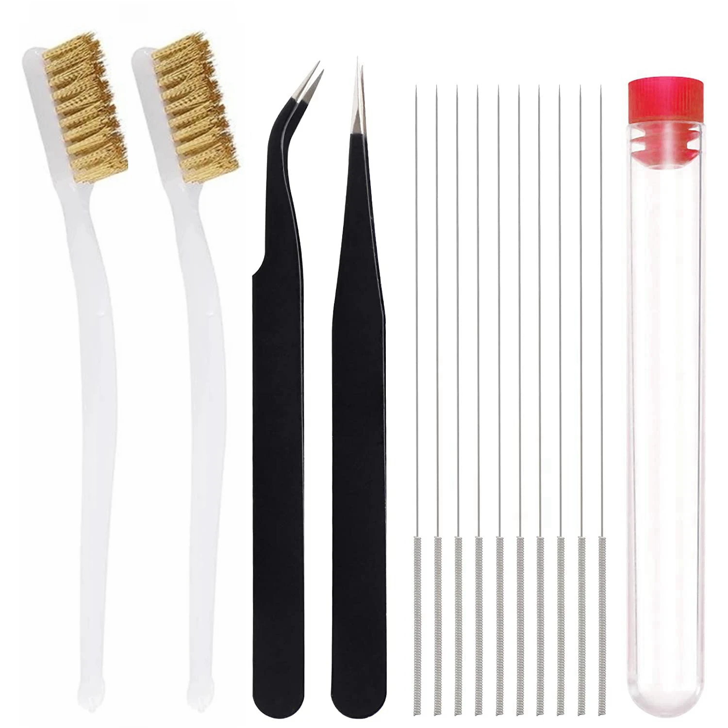3D-принтеры Насадка Набор чистящих средств для ухода за с щётка, скользящая по волосам 10 штук 0,4 мм очистки иглы, 2 вида изысканный пинцет и 2 щетки