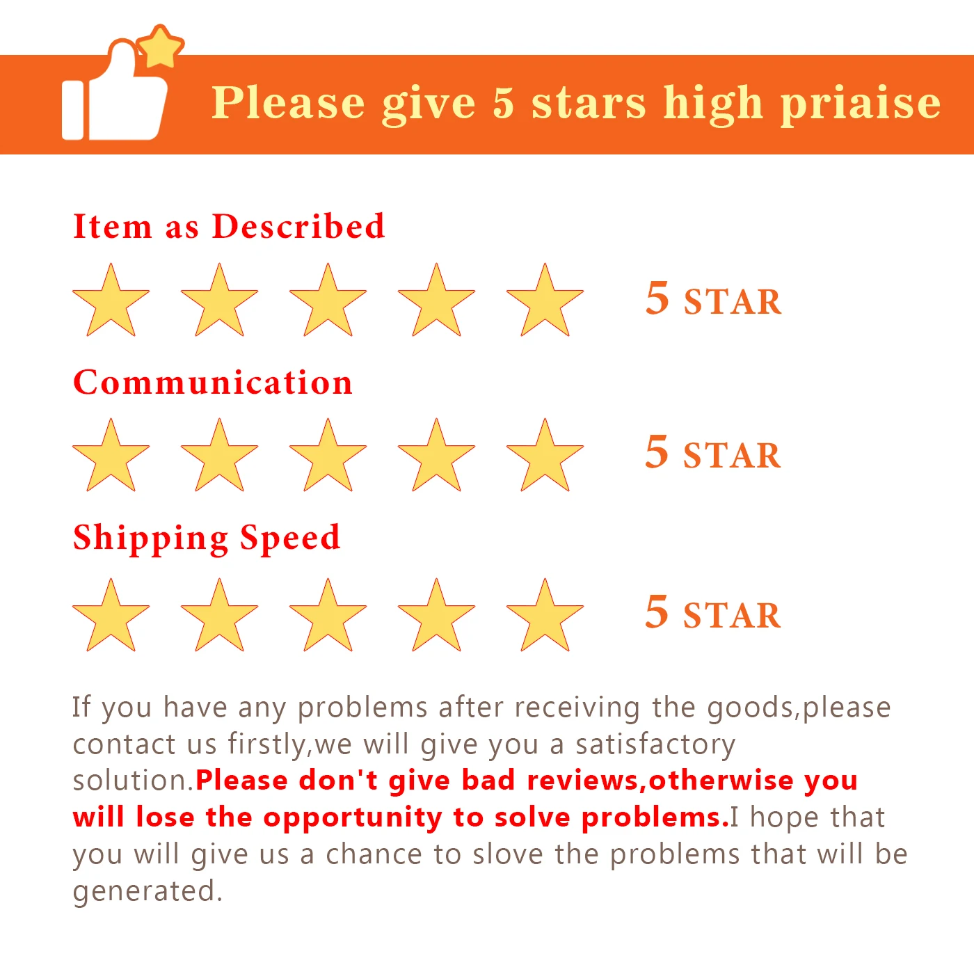 Мы хотим ваше 100% удовлетворение. Если вы не удовлетворены товарами, которые вы получили от нас, и товар отличается от описания. Пожалуйста, свяжитесь с нашей службой поддержки клиентов. Возврат, обмен или замена предлагаются соответственно.