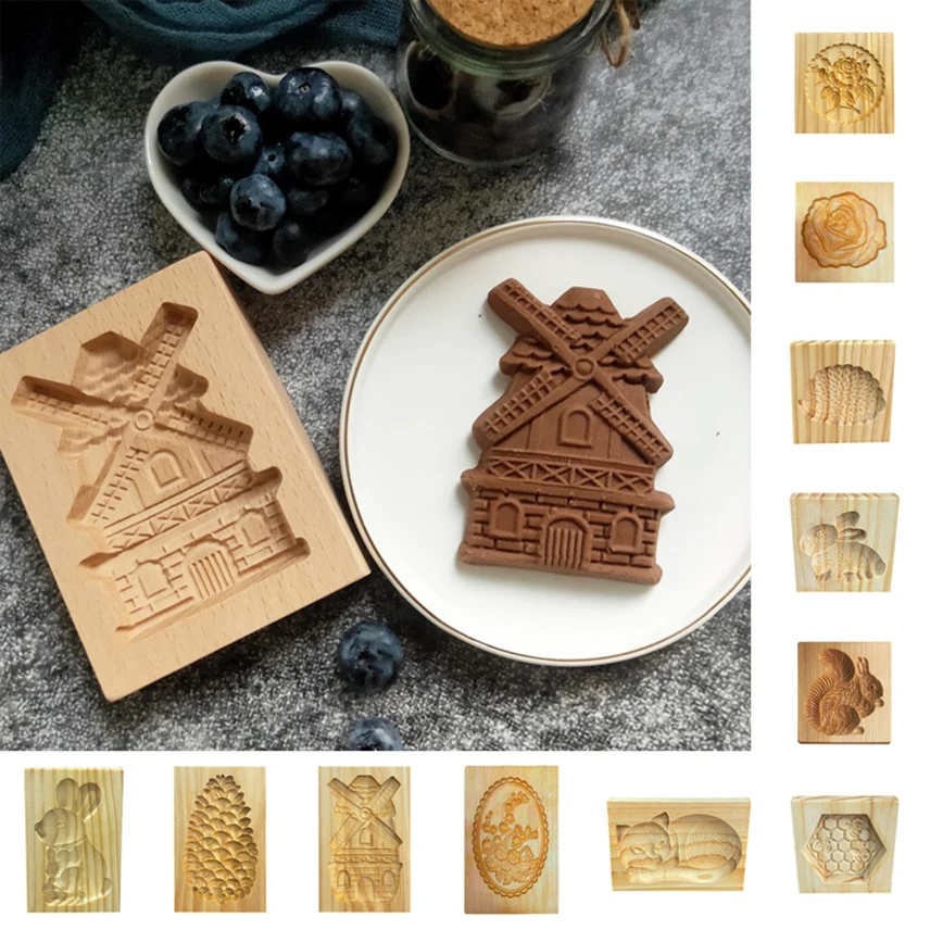 Новая форма для печенья 3D деревянная Пряничная форма для печенья из мультфильма резак для печенья сосновые шишки кролик Роза кухонные аксессуары для выпечки