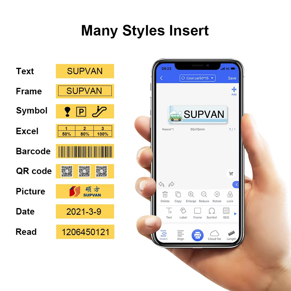 Текст/рамка/Символ/эксель/штрих-код/qr-код/изображение/дата/чтение...
