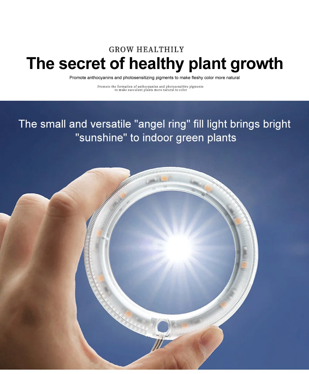 Кольцевой растительный светильник Angel Three Ring Grow светильник DC5V USB Phytolamp для растений Светодиодная лампа полного спектра для комнатных растений саженцы домашний цветок суккуле кольцевой светильник