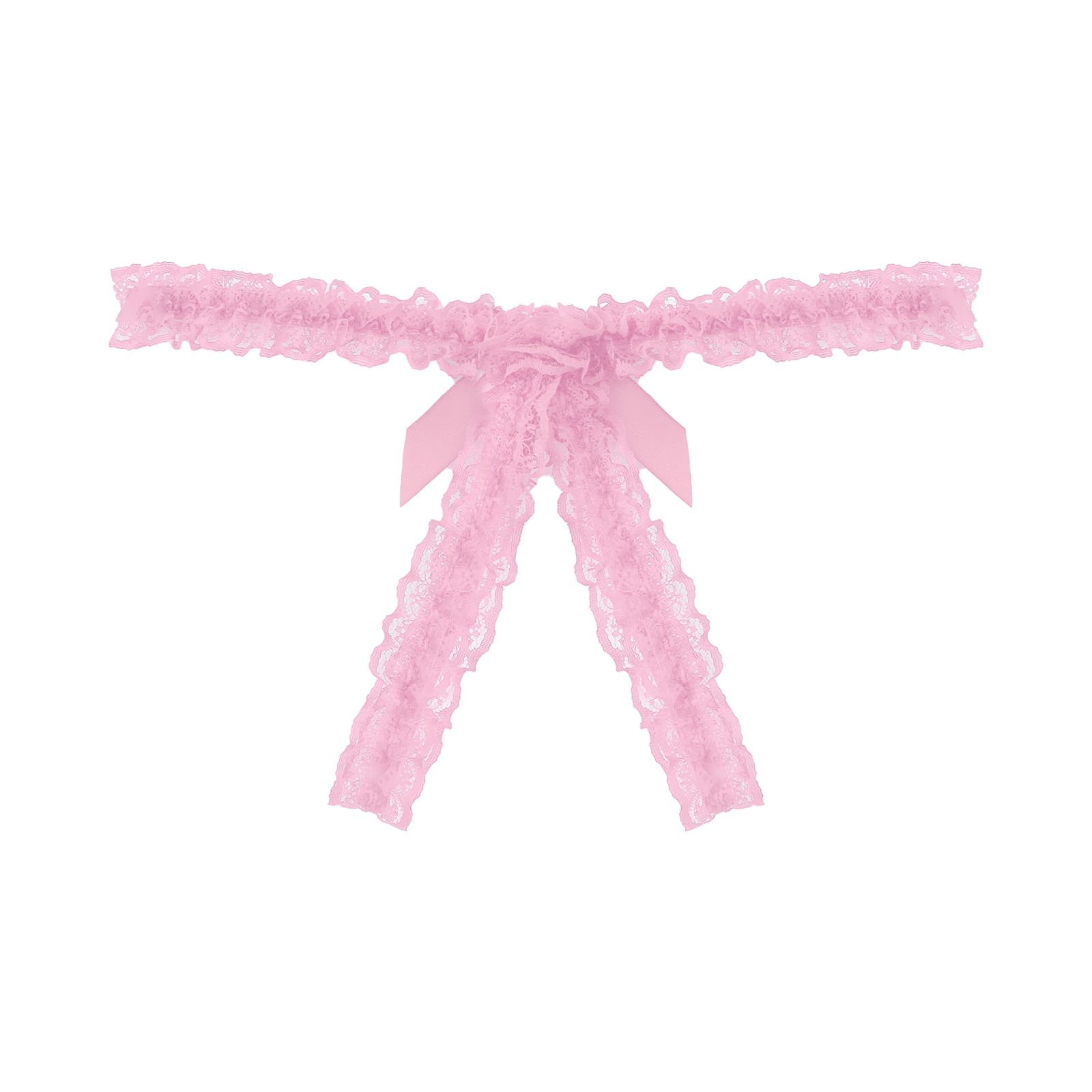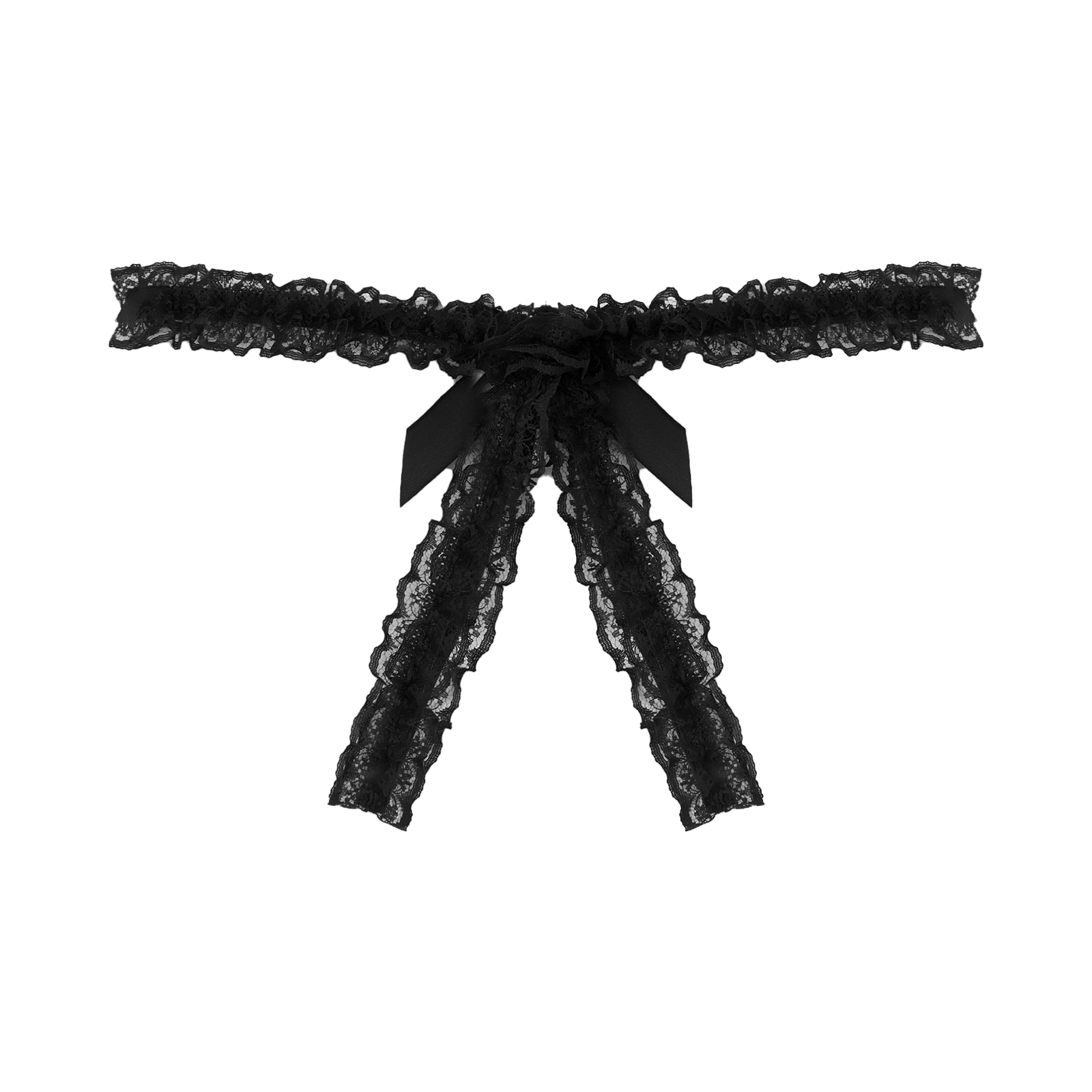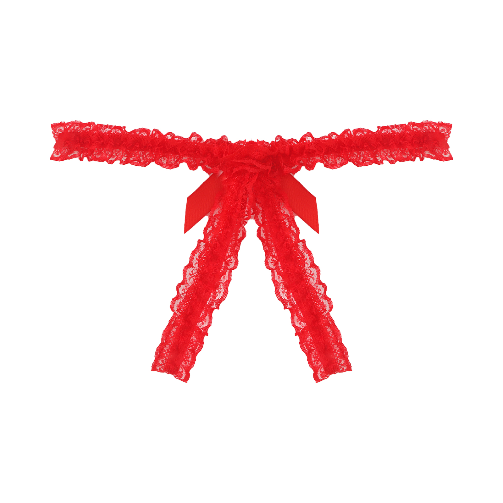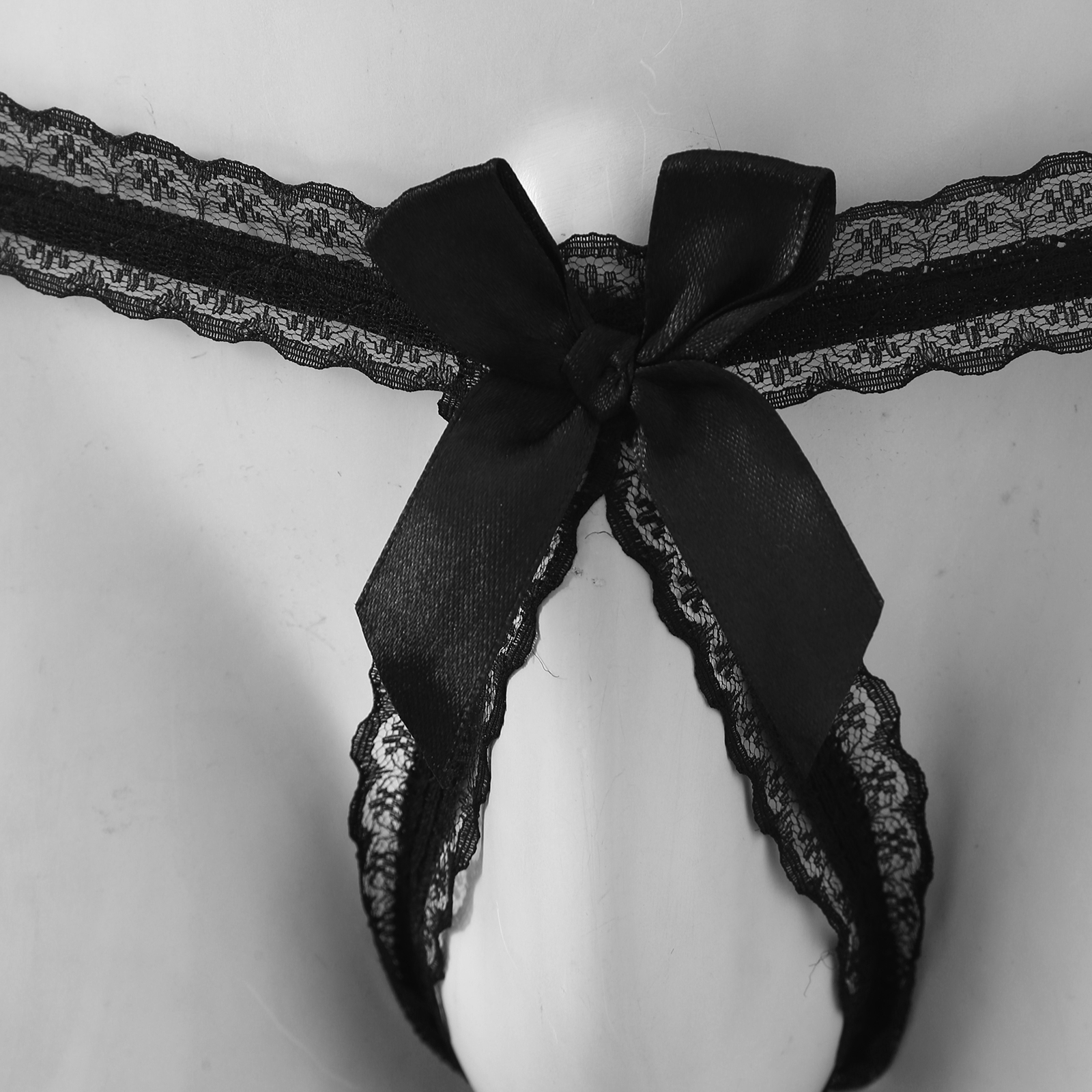 Кружевные стринги с оборками и эластичным поясом без косточек с бантом и открытой спиной для мужчин.