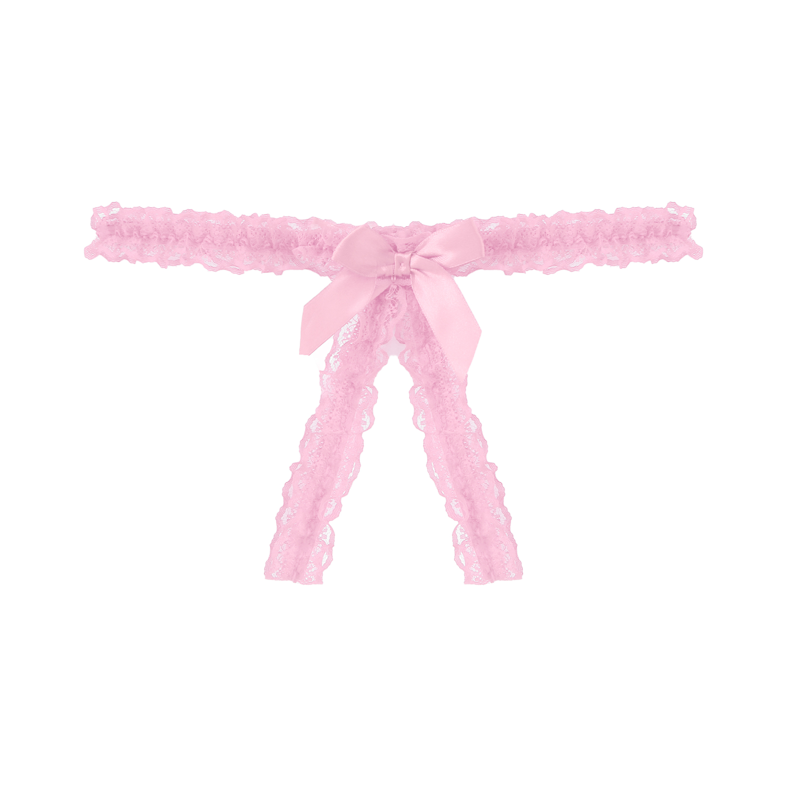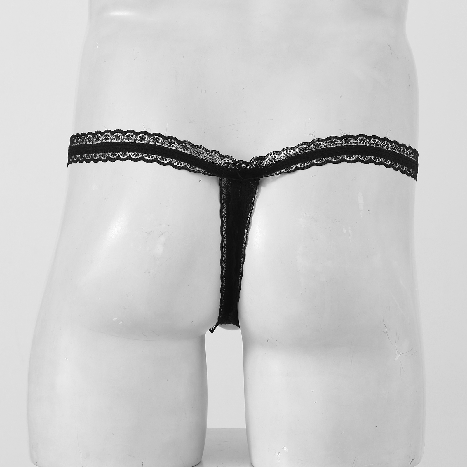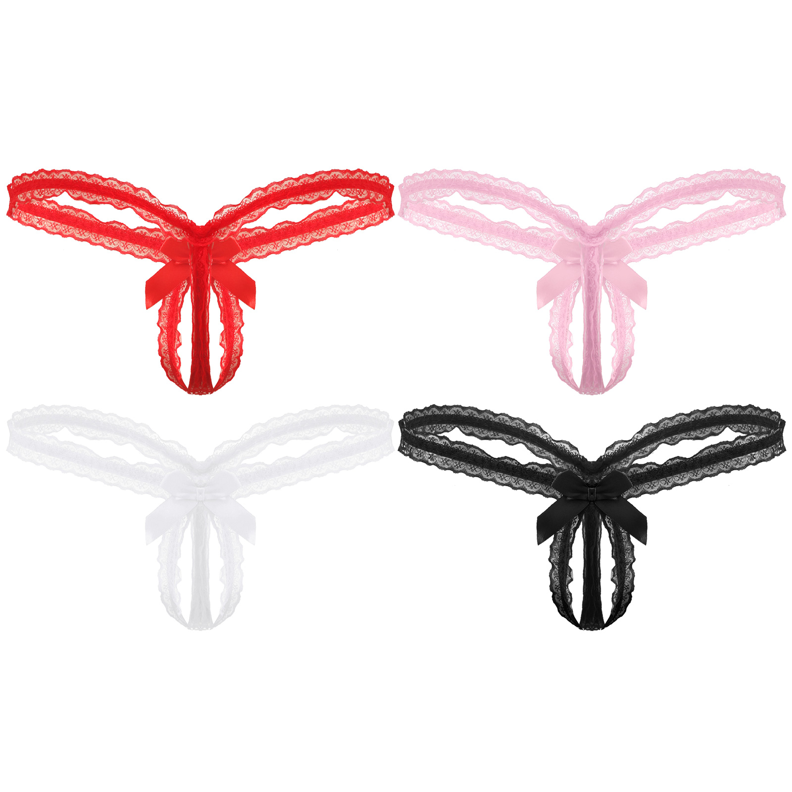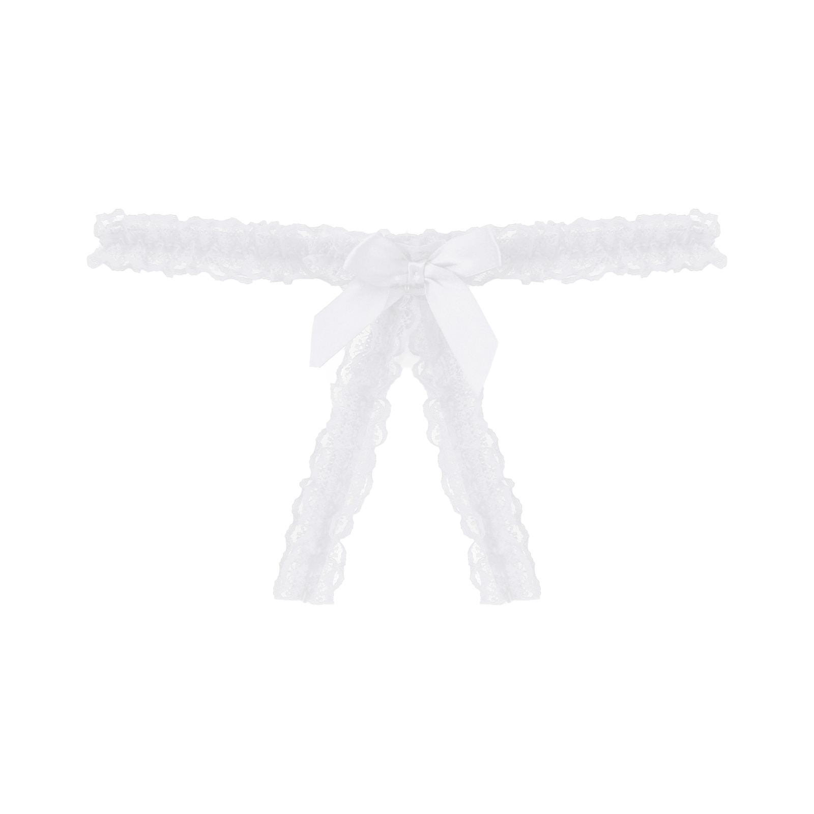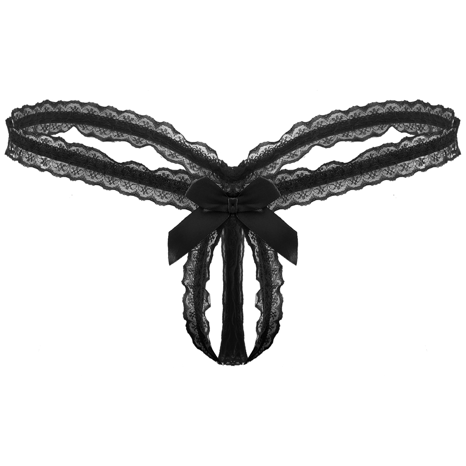 Кружевные стринги с оборками и эластичным поясом без косточек с бантом и открытой спиной для мужчин.