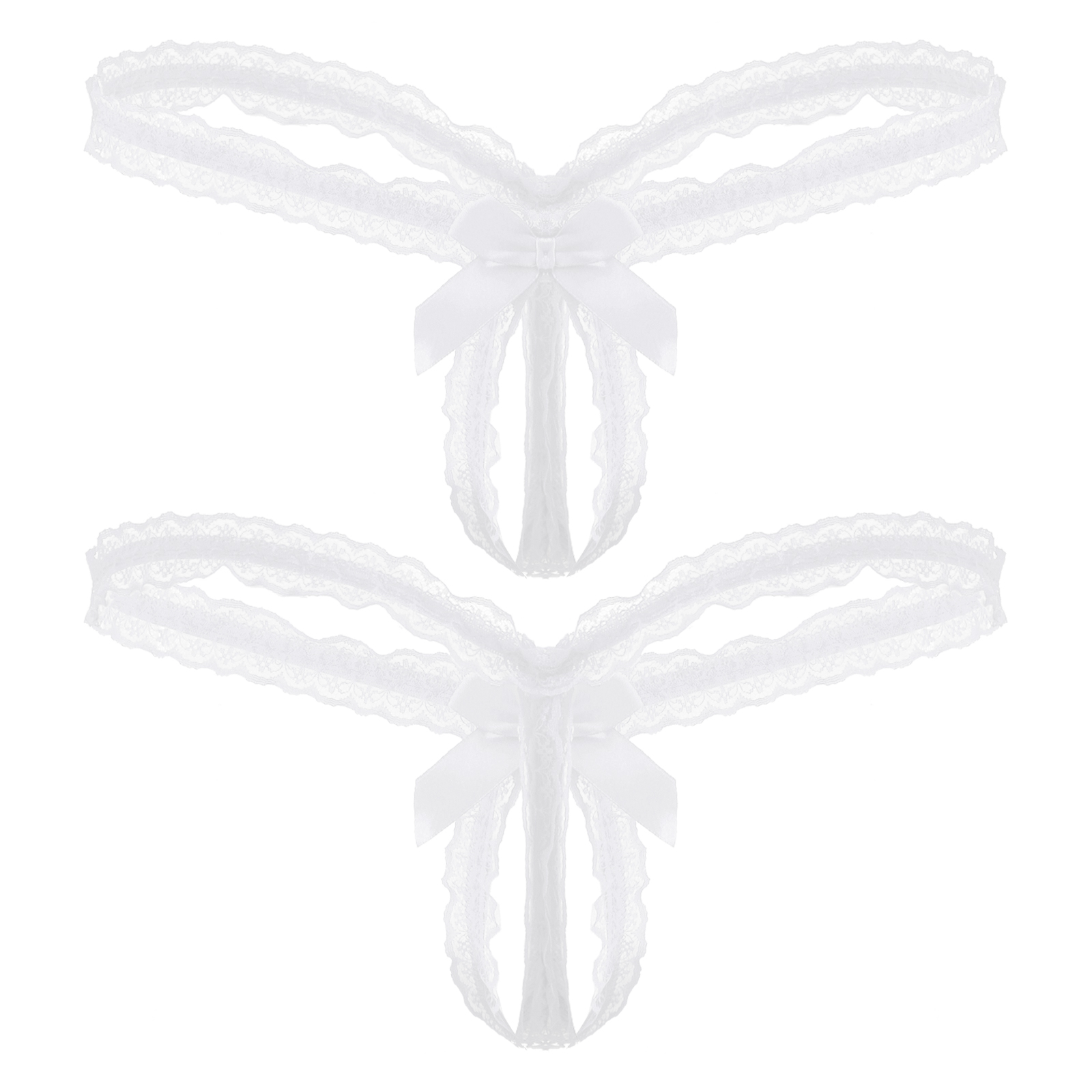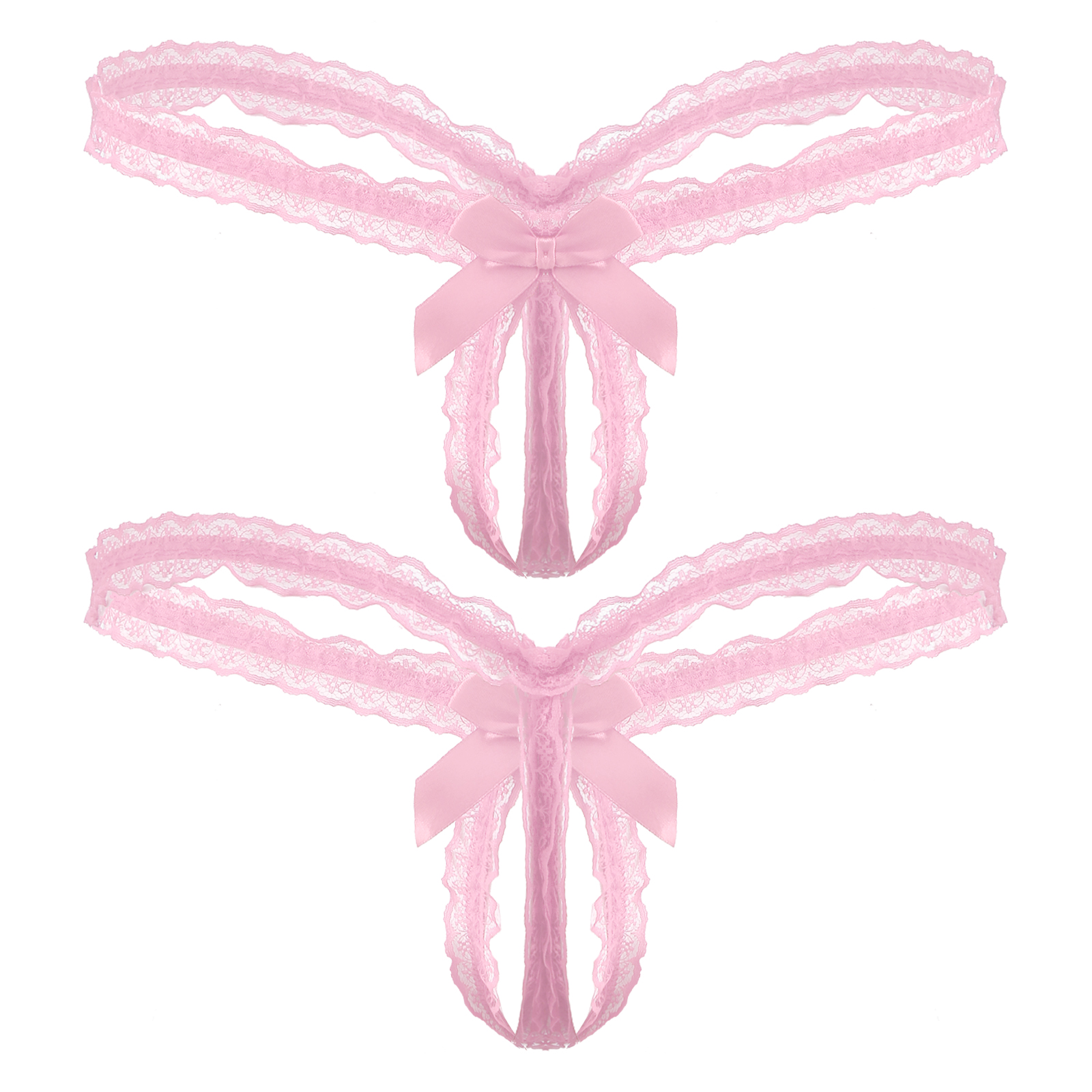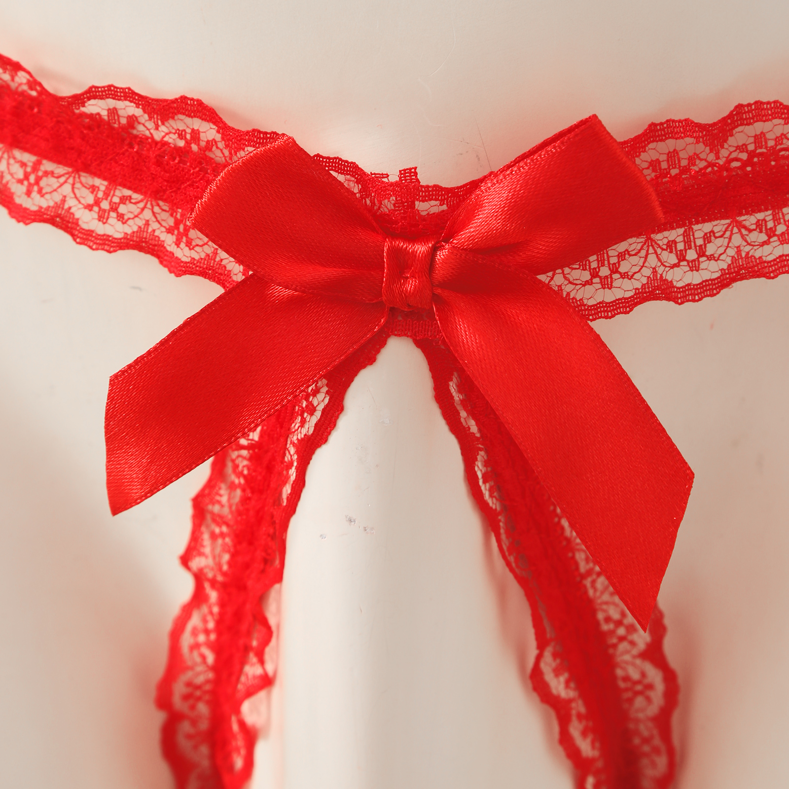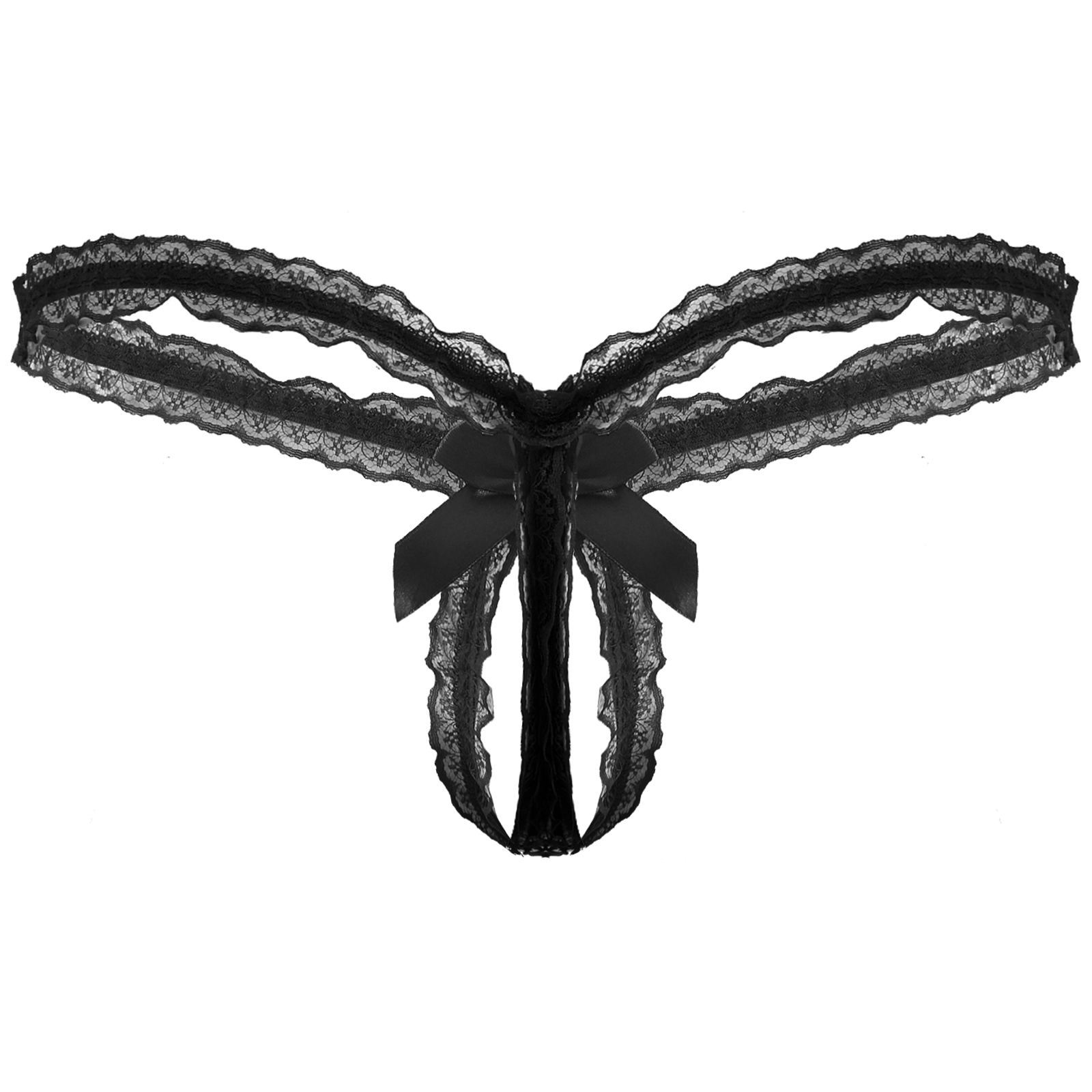 Кружевные стринги с оборками и эластичным поясом без косточек с бантом и открытой спиной для мужчин.