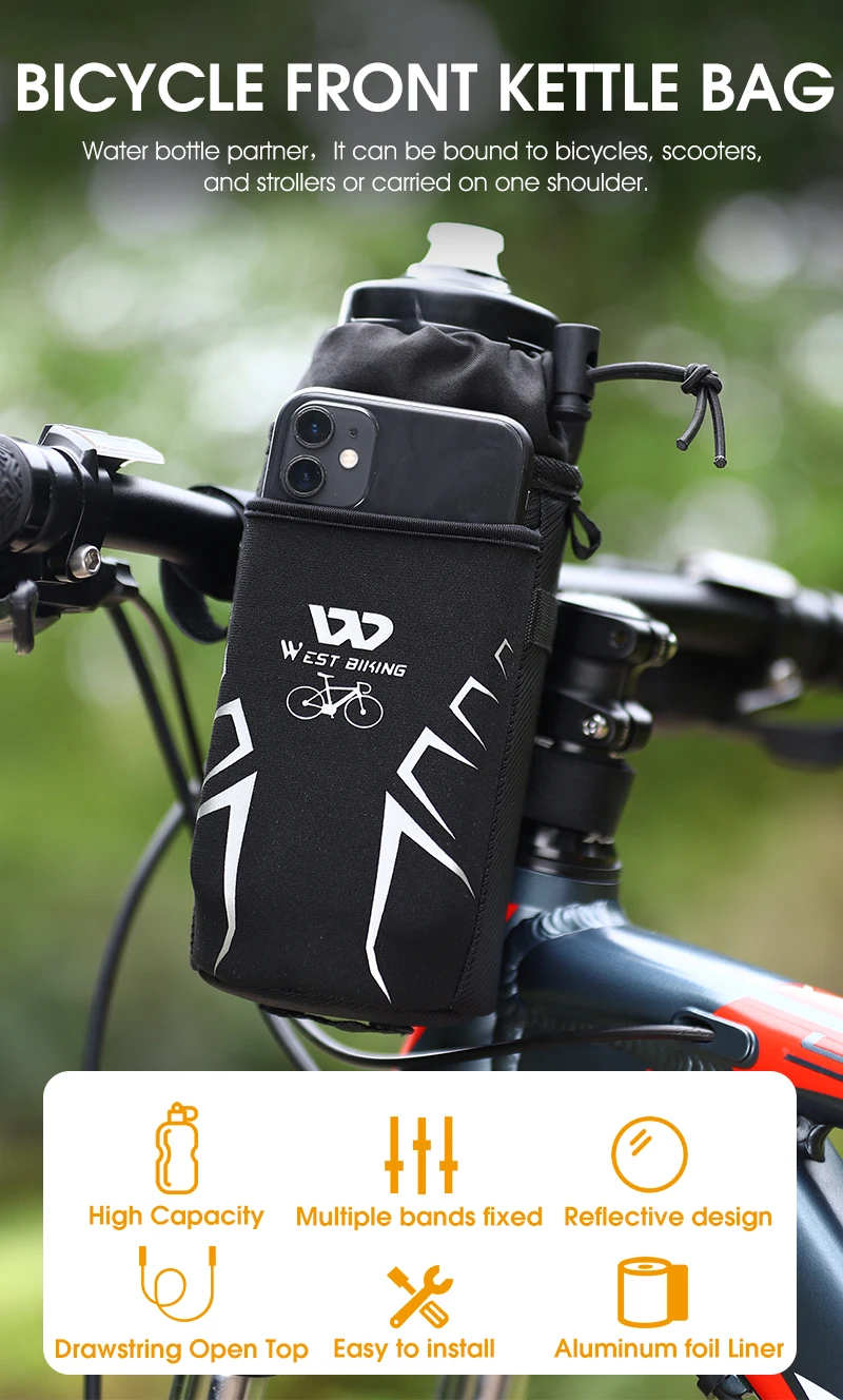 Подвижный ленточный дизайн подходит практически для всех видов чашек и бутылок с водой и может быть установлен на левой и правой сторонах руля.