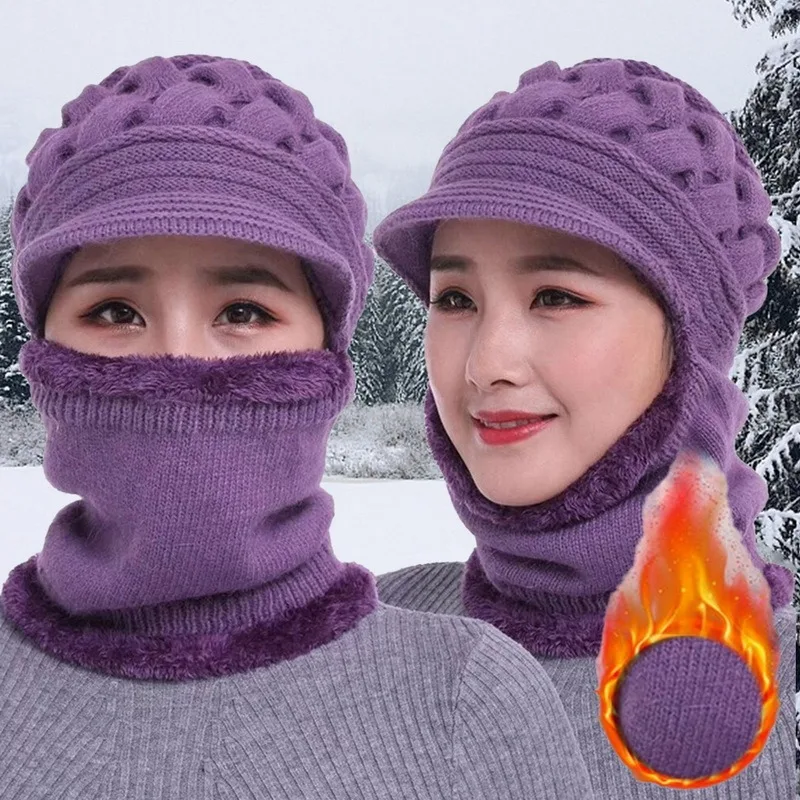 Особенности: это женская зимняя цельная теплая шерстяная шапка с нагрудником и защитой ушей.