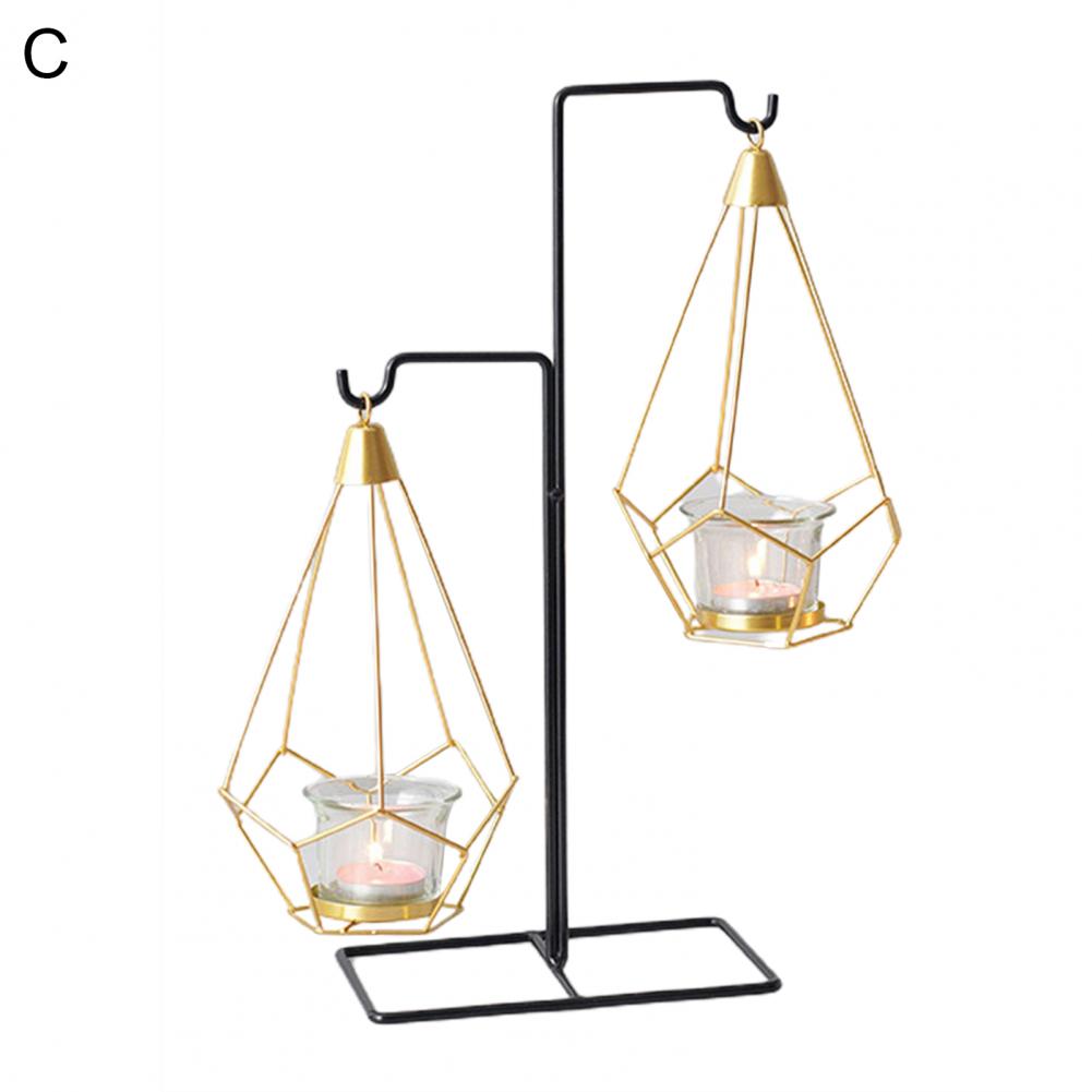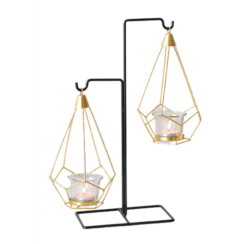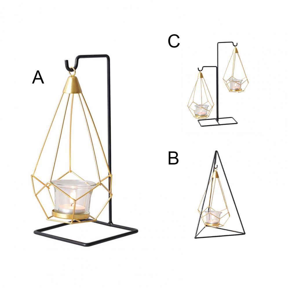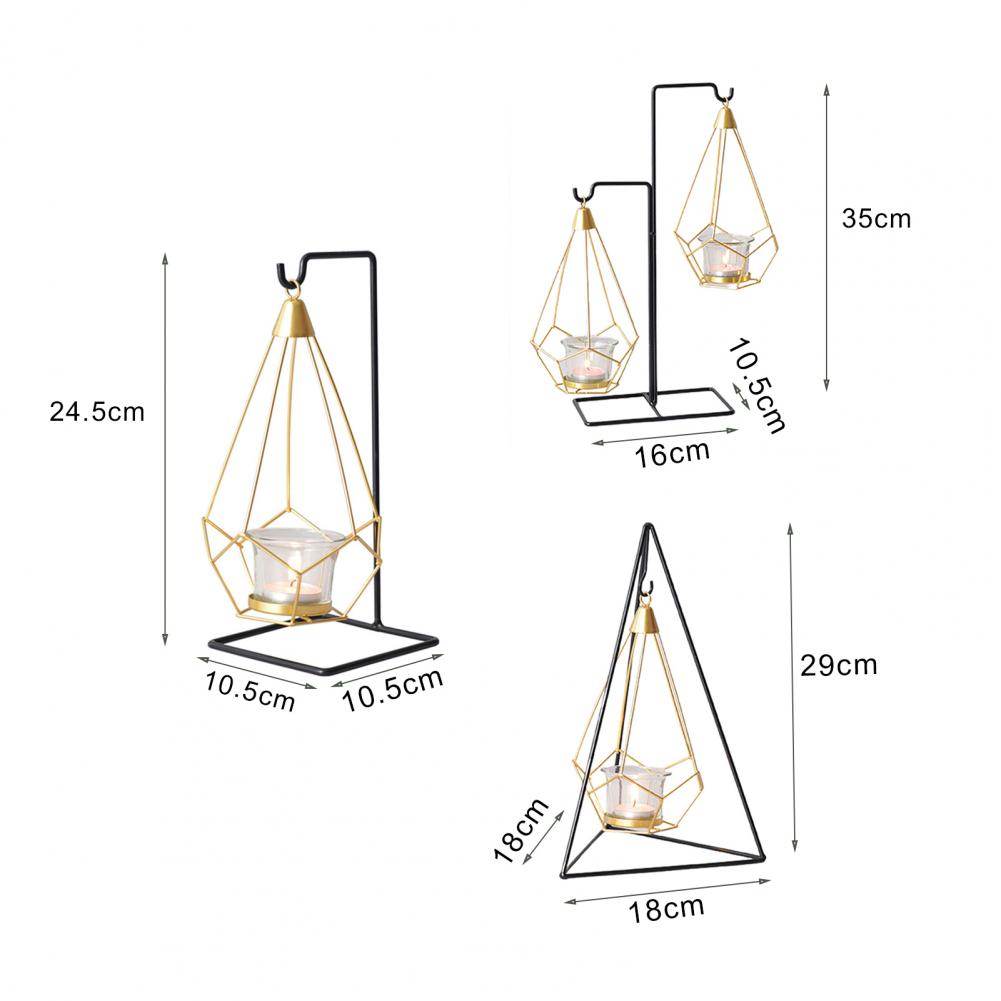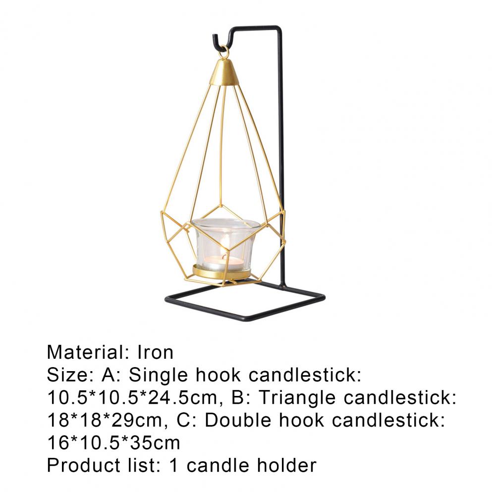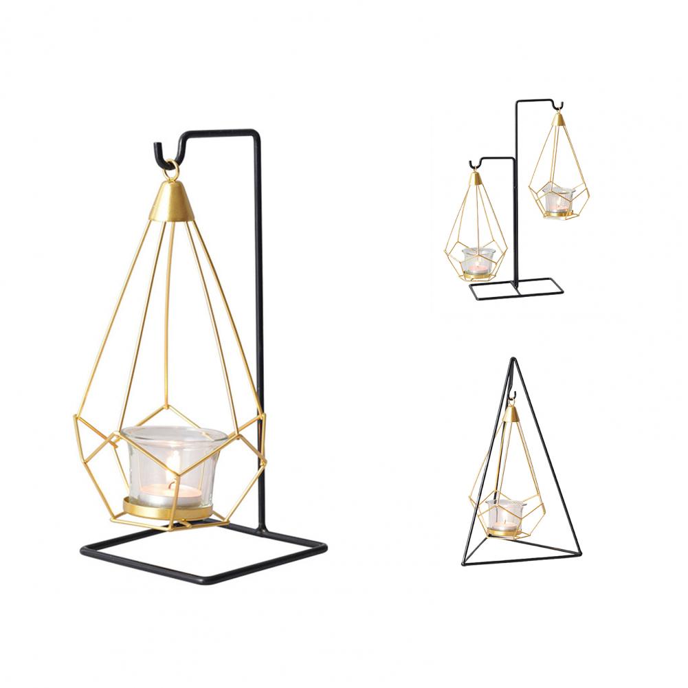 Этот железный подсвечник креативен и может создать элегантную и романтическую атмосферу для вас, потому что он имеет геометрическую форму и подвесной дизайн.