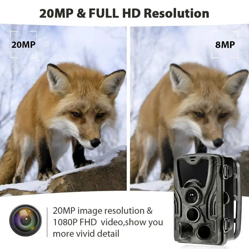 120 градусов 1080P HD PIR сенсор камера, поддержка 20MP / 16MP / 8MP / 5MP / 3MP опциональное разрешение изображения, 1080P 30fps видео. Инфракрасная Камера Съемки диких животных