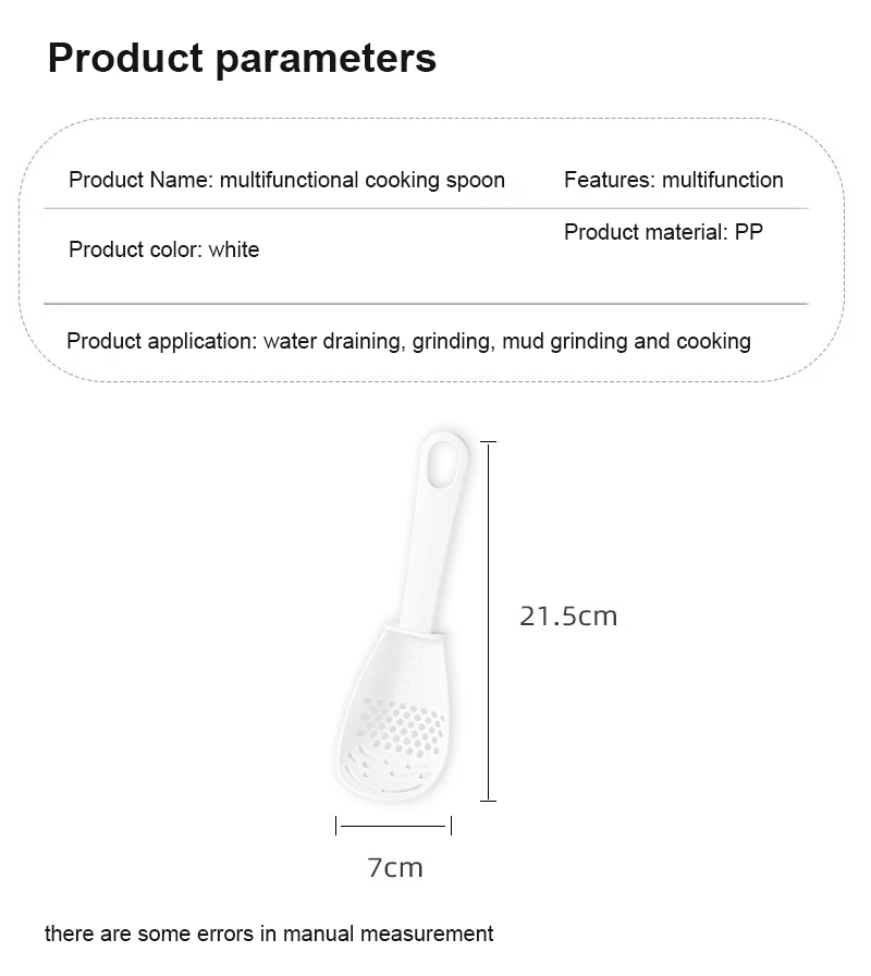 1. Многофункциональные ложки для приготовления пищи, фильтрация, разделение, прессование и шлифовка грязи интегрированы, чтобы решить ваши проблемы.