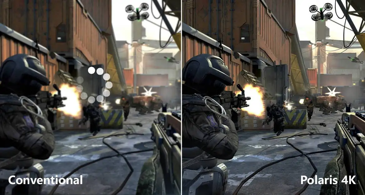 Благодаря новейшей технологии отображения с высоким динамическим диапазоном (HDR 10) Polaris обеспечивает более яркие белые и черные уровни. Яркие сцены выглядят четкими и четкими, в то время как темные сцены оставались подробными с более глубокими черными уровнями.