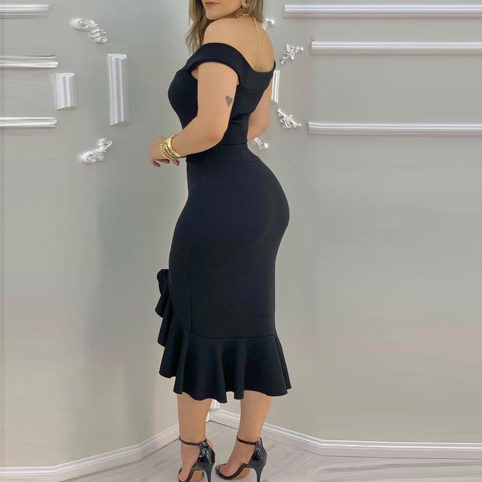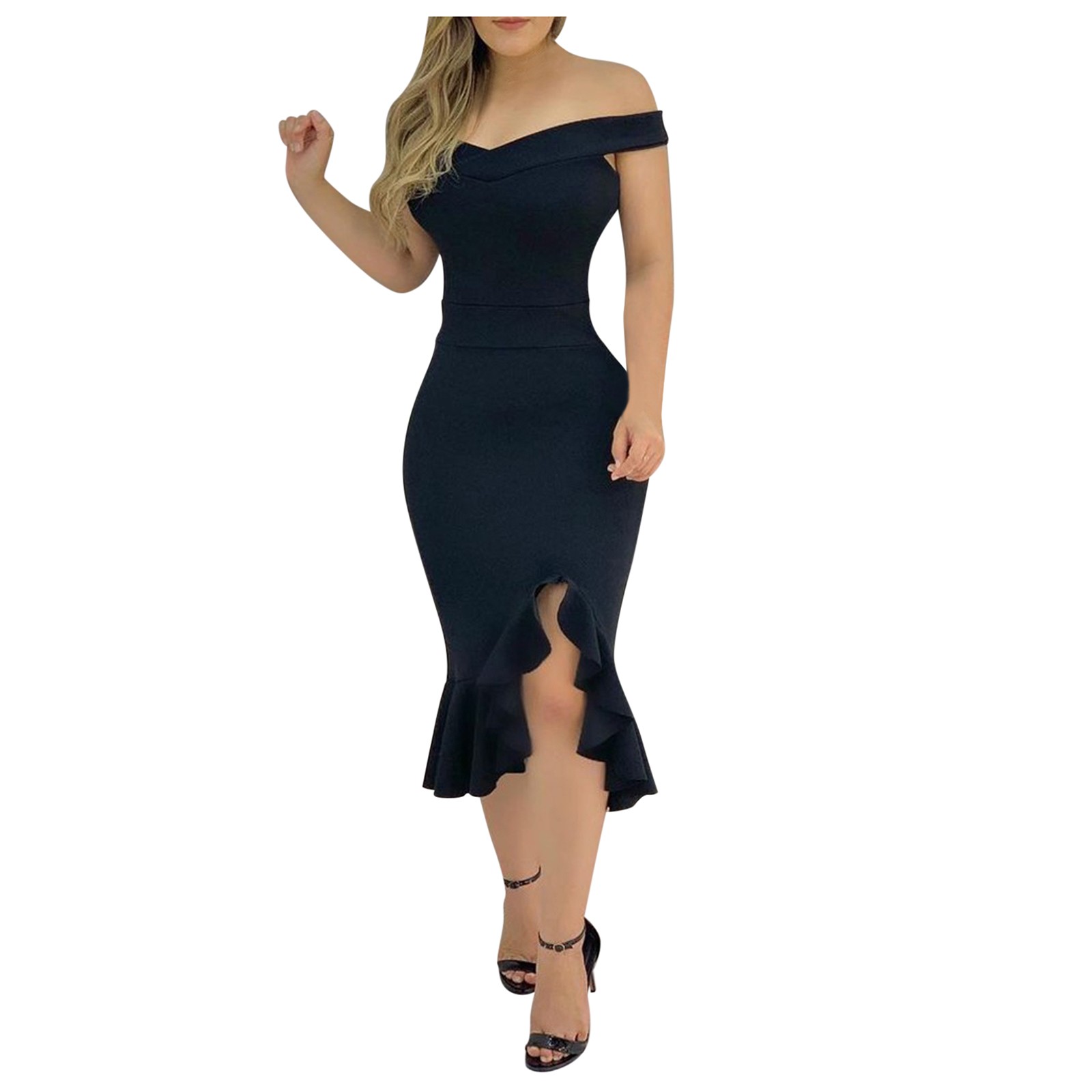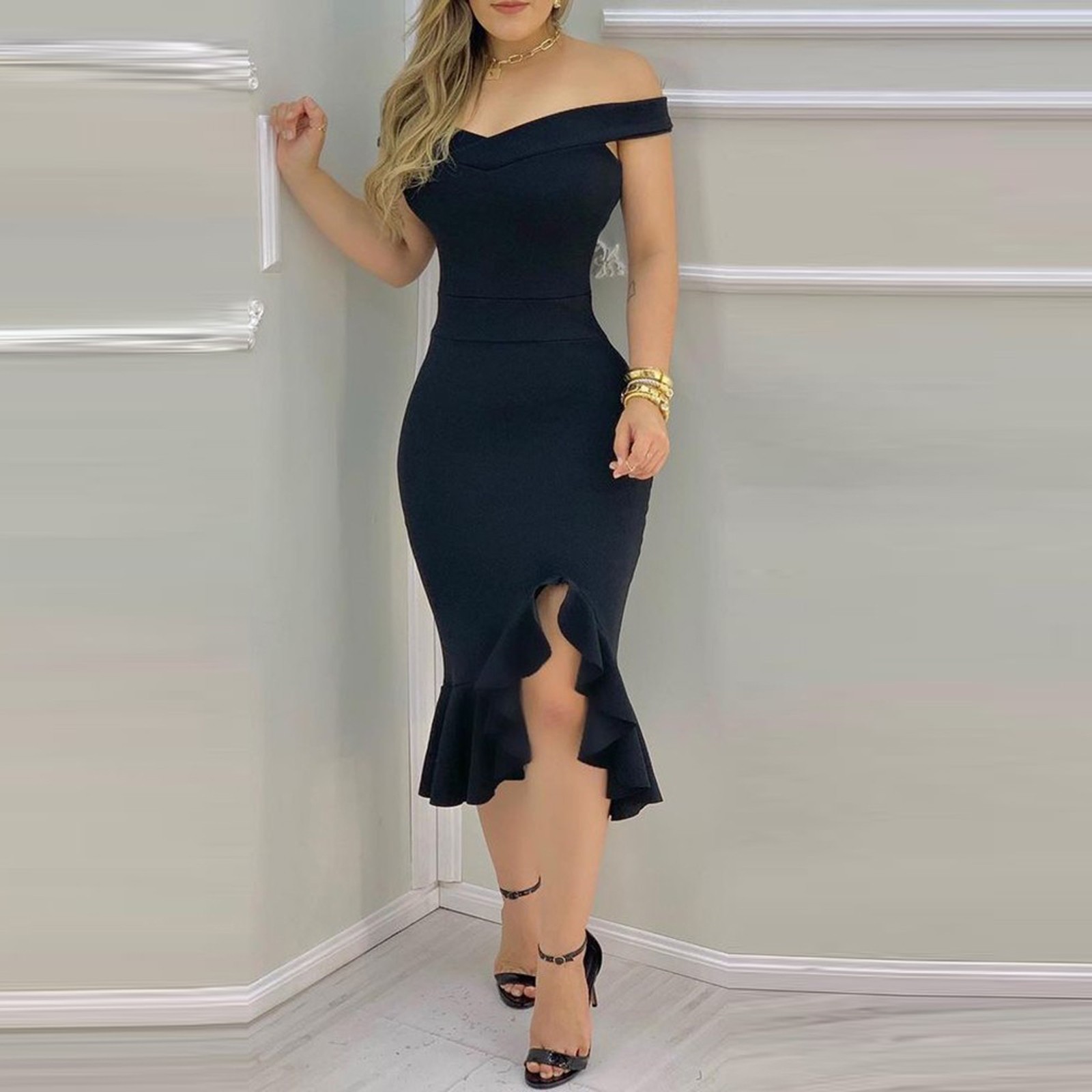 Женское модное однотонное платье с открытыми плечами и оборками, свободное платье с разрезом