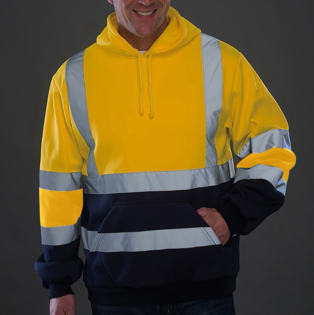 Мужская Дорожная Рабочая высокая видимость пуловер с длинным рукавом Толстовка с капюшоном Топы Блузка