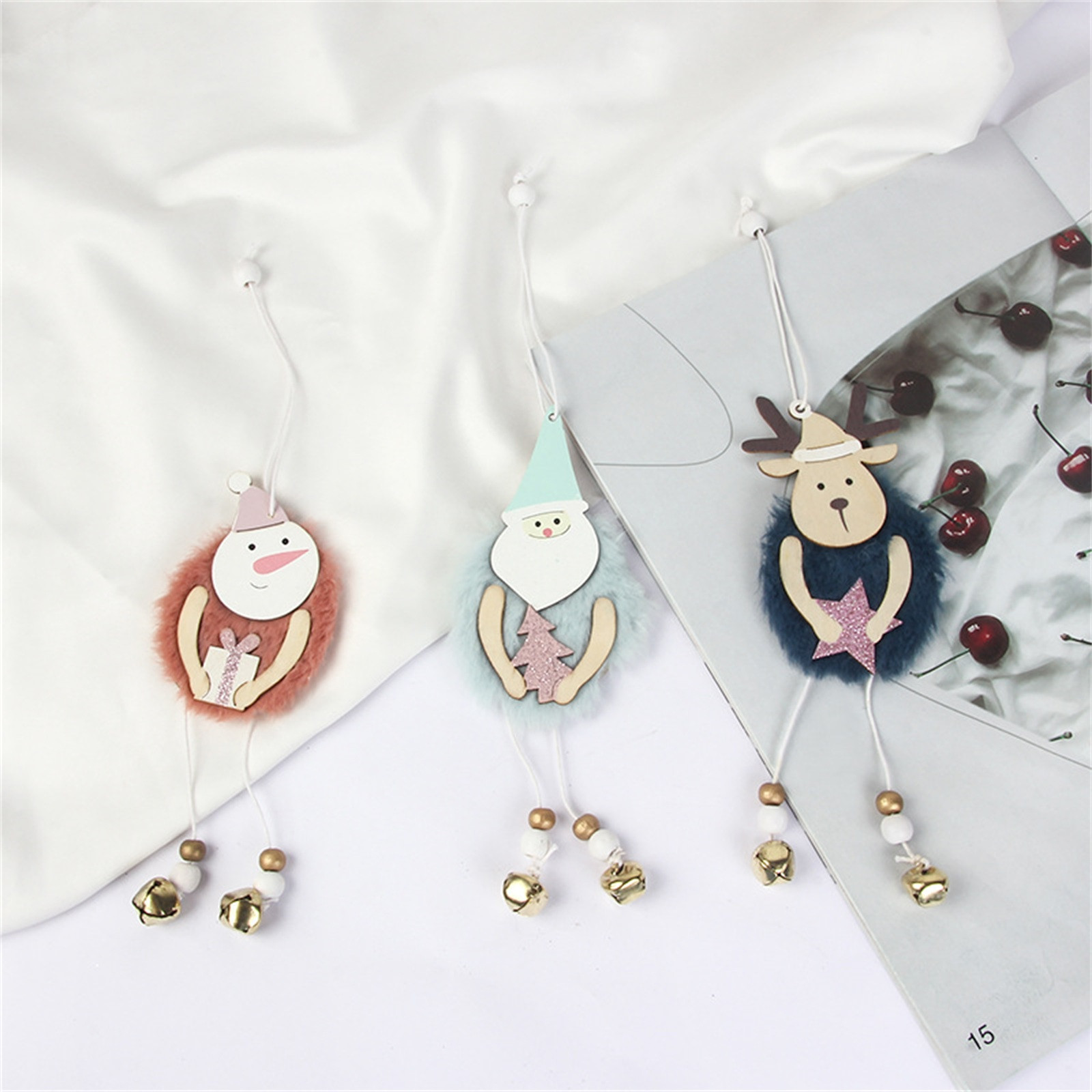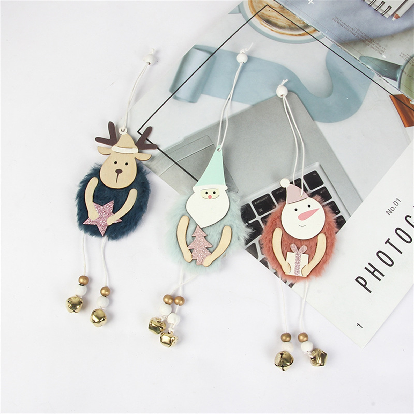 Christmas Ornaments Wooden Small Pendants Christmas Tree Scene Decoration Christmas Gifts 3pcs