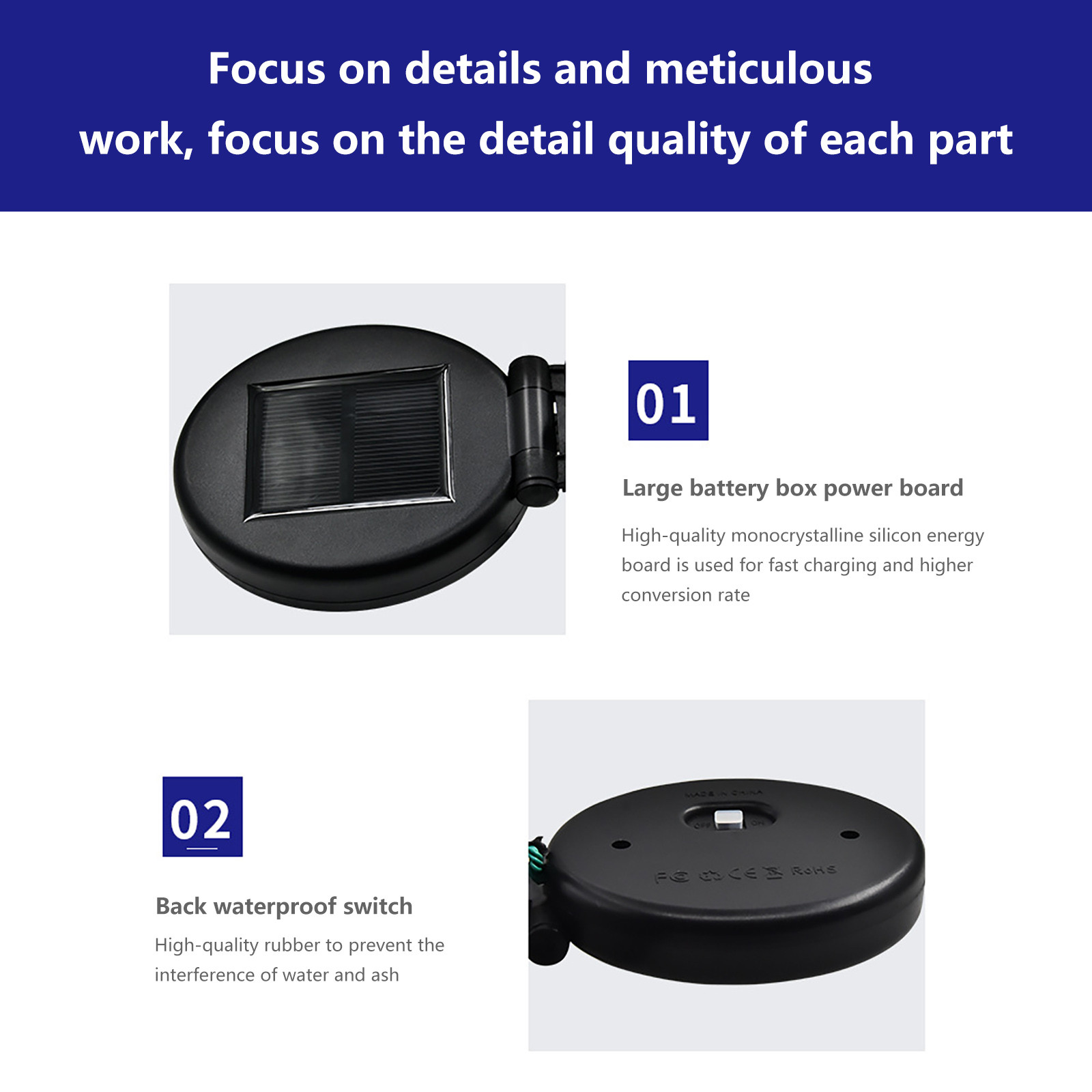 [Меры предосторожности]: перед зарядкой следует открыть выключатель на задней панели солнечной батареи, иначе он не будет заряжен и не будет светильник ночью.