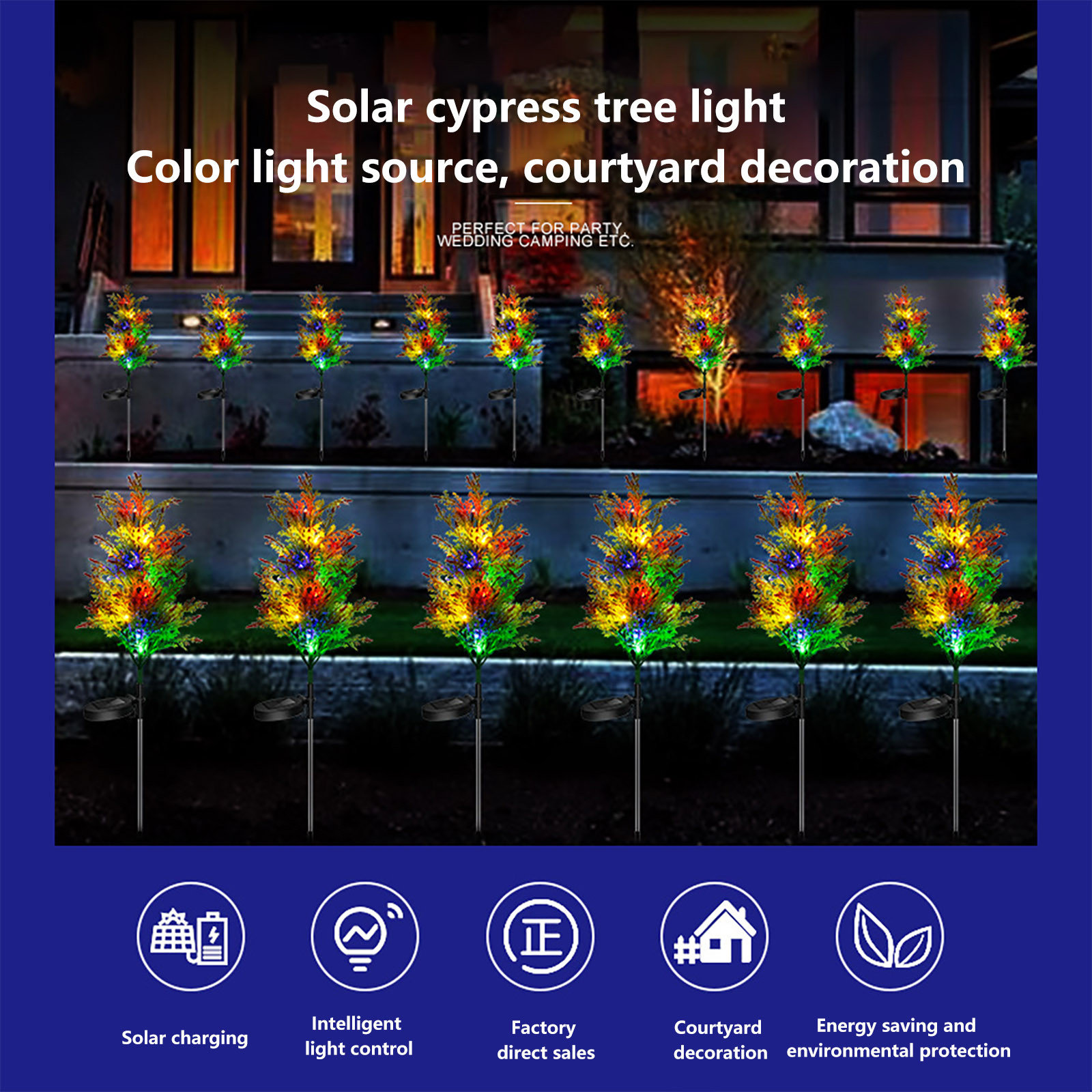 Наш солнечный садовый светильник Встроенный чувствительный светильник-датчик. Дополнительные батареи не могут быть помещены только на солнце, а напольная лампа на солнечной батарее автоматически включается ночью и автоматически выключается в течение дня.