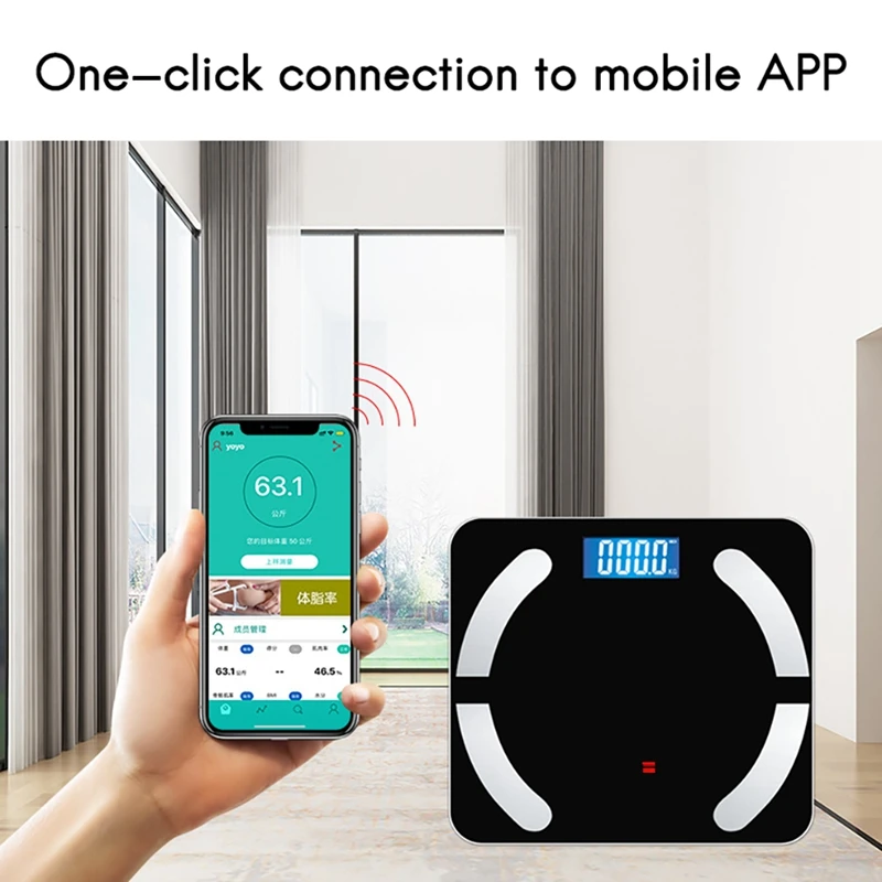 [BODY COMPOSITION ANALYSIS]Smart scales can not only display weight, but also display BMI, body fat, subcutaneous fat rate, body water, protein, BMR, Bone mass, etc. through electronic bioimpedance measurement technology. Various statistics will guide you to maintain a healthy lifestyle.