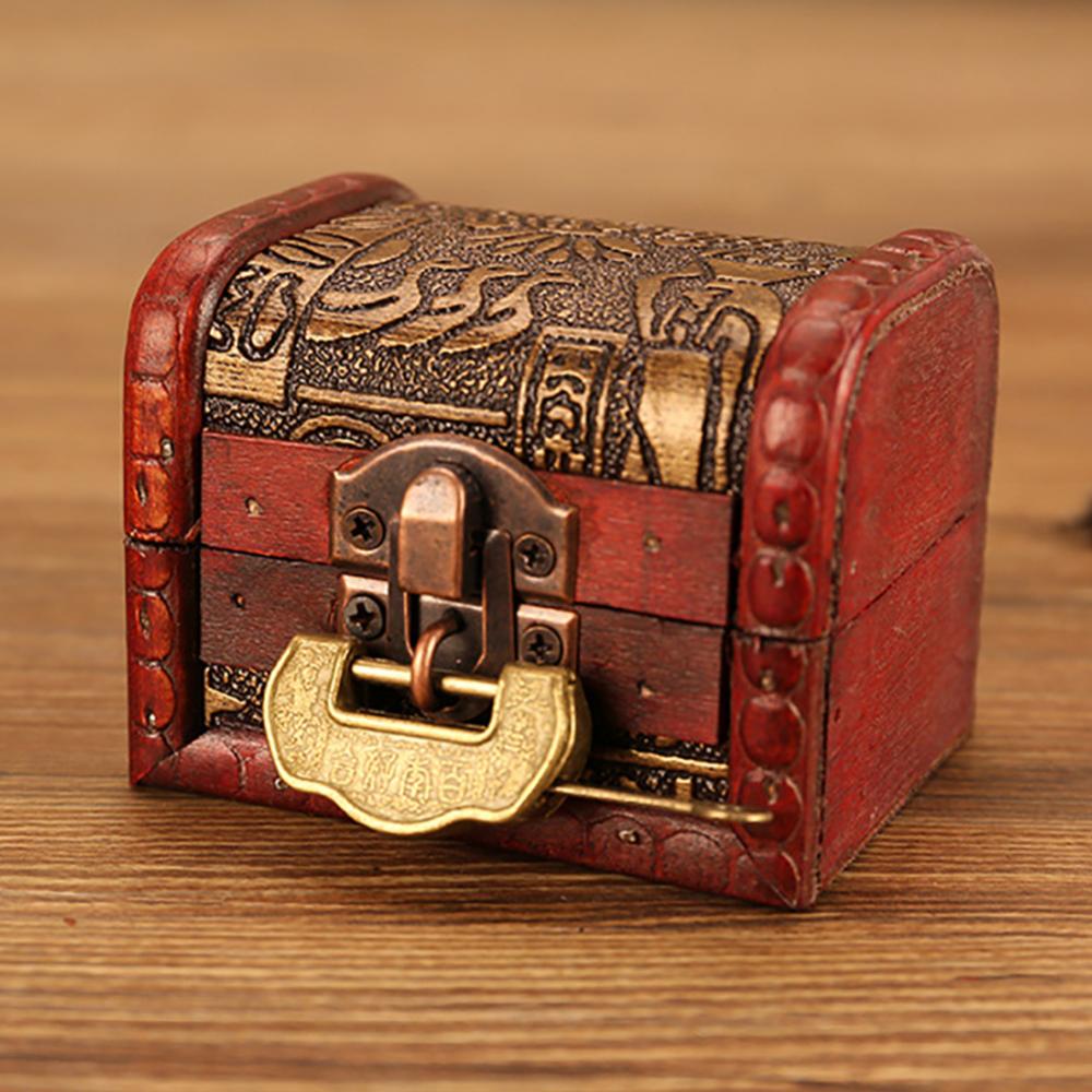 Винтажный сундук с сокровищами деревянная шкатулка для хранения ювелирных изделий Чехол-держатель с замком жемчужное кольцо деревянный сундук-Органайзер