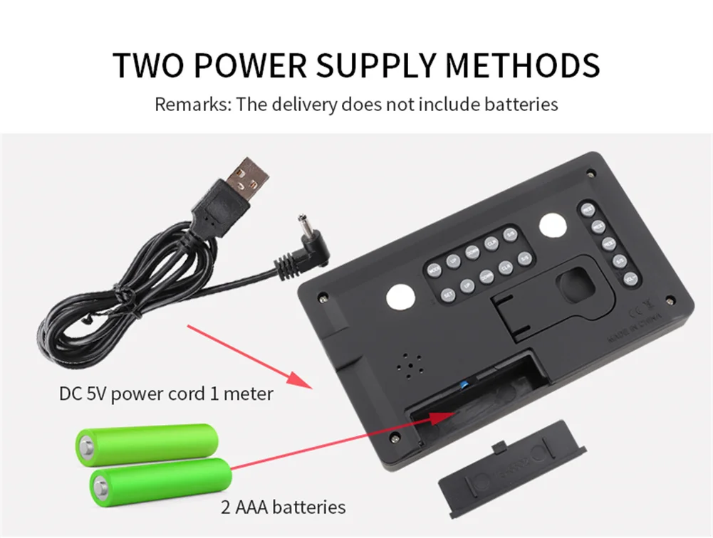 Два способа питания: usb-кабель для зарядки и 2 батарейки типа AAA (не входят в комплект)