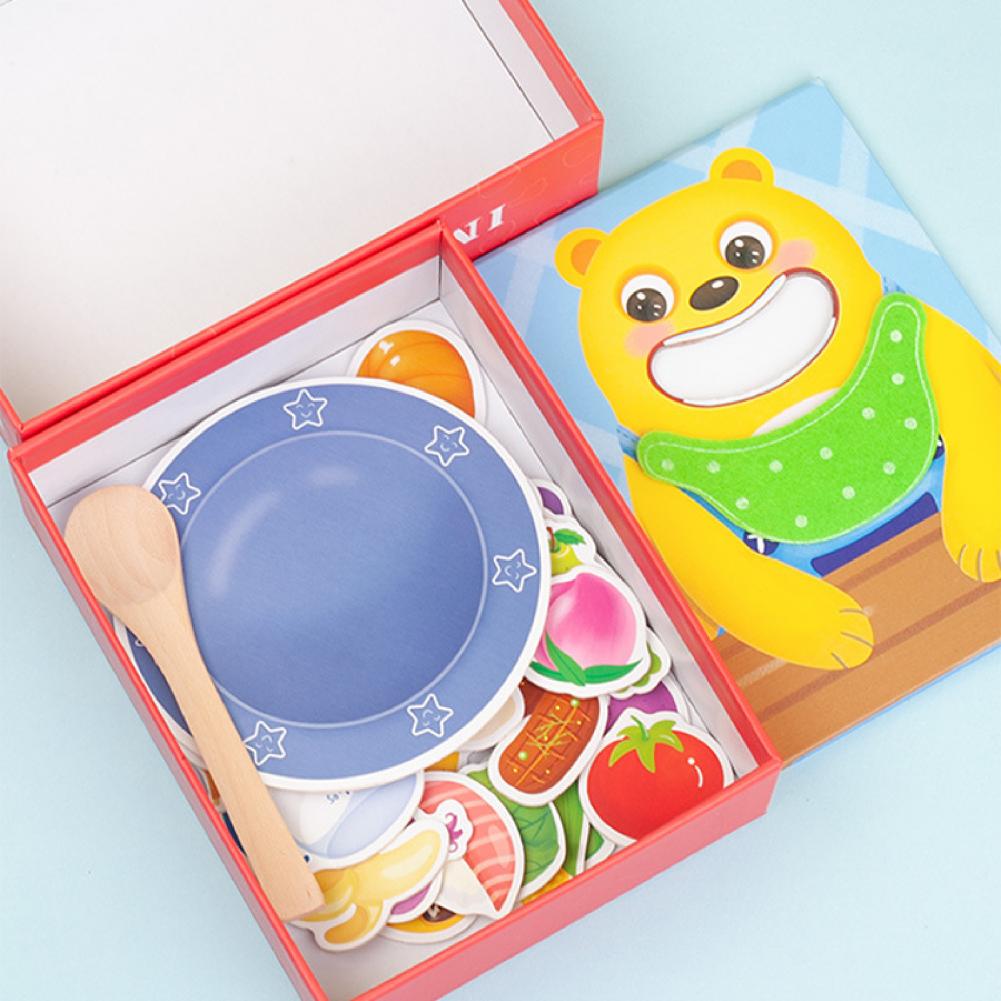 Он подходит для интерактивного игрового процесса двух детей, они могут использовать свои гибкие маленькие руки, чтобы использовать ложки или палочки для еды, чтобы прикрепить еду к миске, и тот, у кого есть больше еды в мисках, выиграет игру.