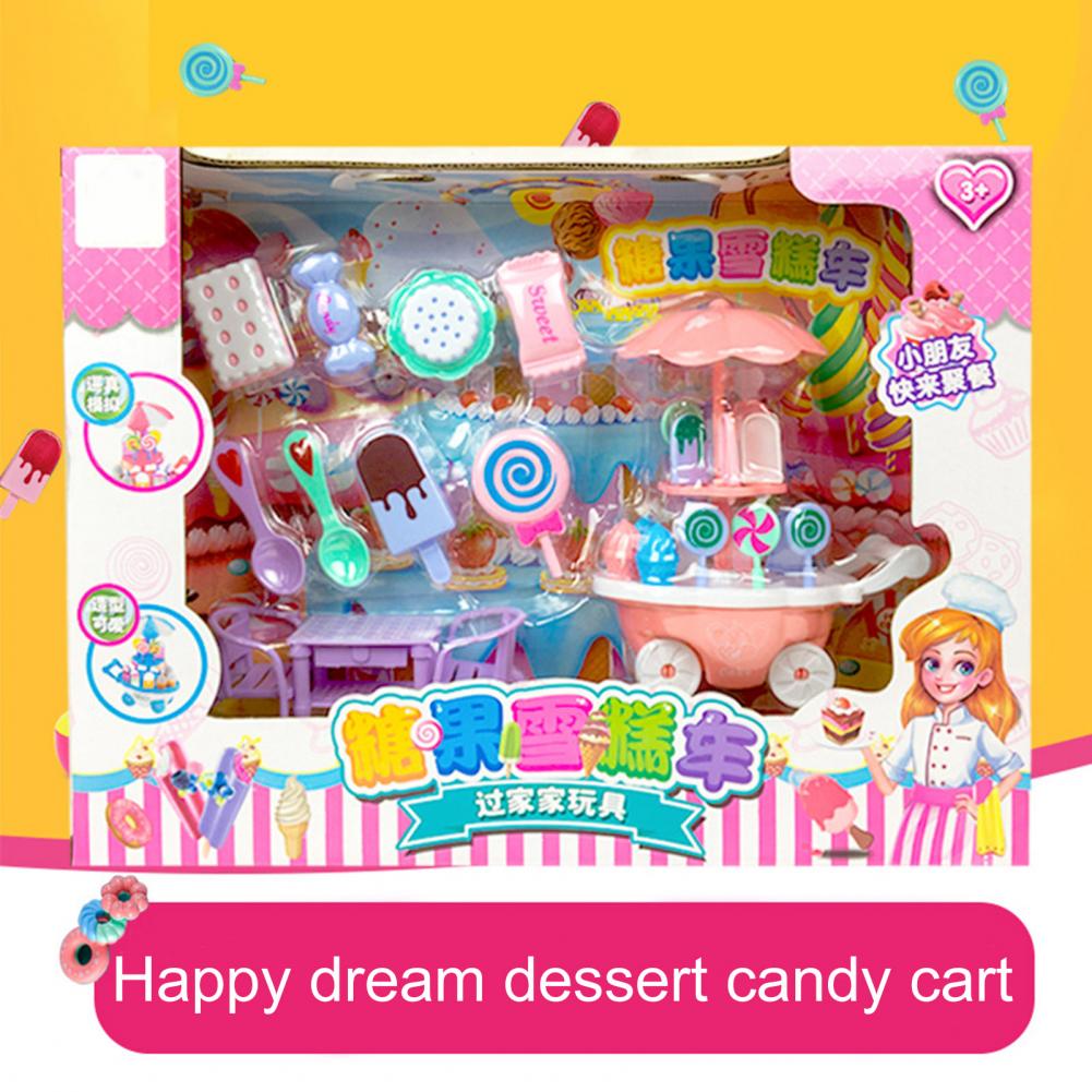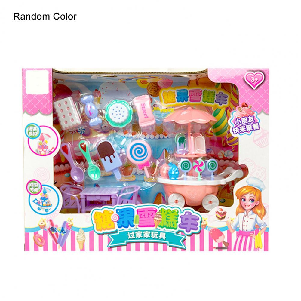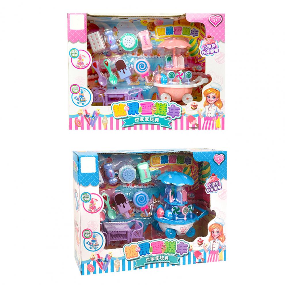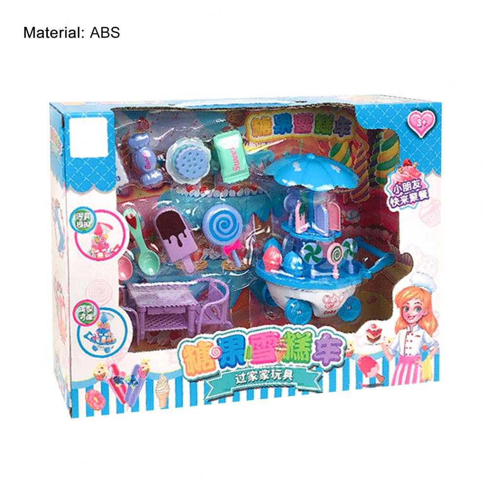Это полный игровой набор игрушек для дома, включающий множество аксессуаров, в том числе имитированное и гладкое мороженое, леденцы, зонты для создания красочной жизненной сцены для ролевых игр.