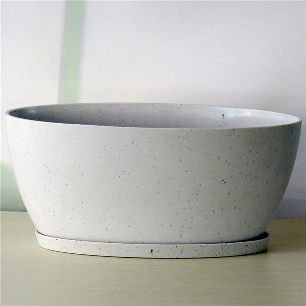 Овальный однотонный пластиковый цветочный горшок, контейнер для растений с лотком, офисный домашний декор