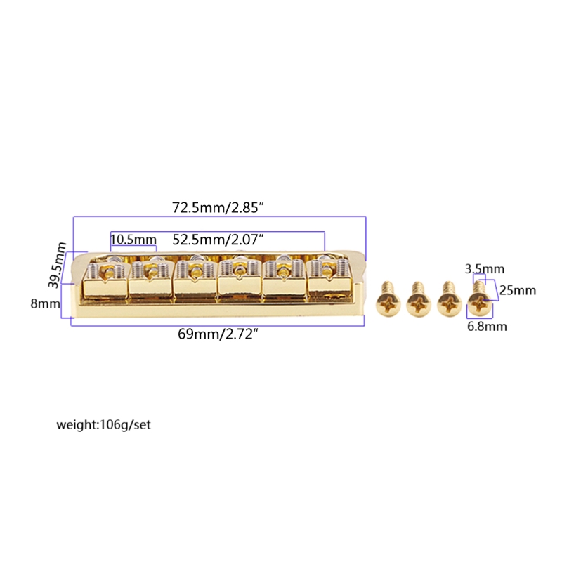 Полный блок электрогитары с тремоло-Бридж поп-в руку подходит для Squier пламени Fender U7EF Особенности на 100% абсолютно новый и высокого качества Он изготовлен из качественного металлического материала с отделкой, прочный, антикоррозийный и прочный. Этот фиксированный мост разработан через корпус. Это очень прочная и хорошо сделанная тяжелая часть. Это будет очень подходящим в качестве жесткого хвоста или телеметрического замены или обновления. Обновите текущий мост с помощью этой ПРОФЕССИОНАЛЬНОЙ СМЕННОЙ части. Спецификация: Материал: металл Размер: 8,5/8,5 Вес: 106 г/компл. Цвет: Золотой Размер листа: около 72x39.5x8мм Аккорд расстояние: около 10,5 мм Посылка включает в себя: 1x Tremolo Bridge 4x крепежные винты Примечание: 1. Допускается погрешность в 1-2 см из-за ручного измерения, убедитесь, что вы не возражаете перед заказом. 2. В связи с разной конфигурацией разных мониторов изображение не отображает фактический цвет товара.