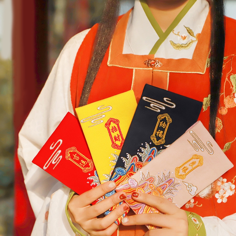 Китайские красные конверты с вышивкой, карманы для счастливых денег, Подарочная сумка HongBao для нового года 2022, Весенний фестиваль M6CE