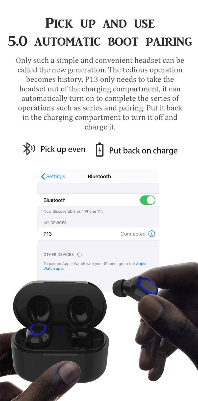 2: автоматически включается, когда крышка открывается, и вы можете непосредственно найти ссылку на имя сопряжения Bluetooth после открытия крышки. Супер сильный сигнал, диапазон подключения до 15 м