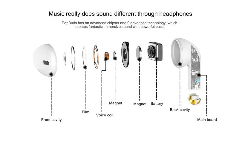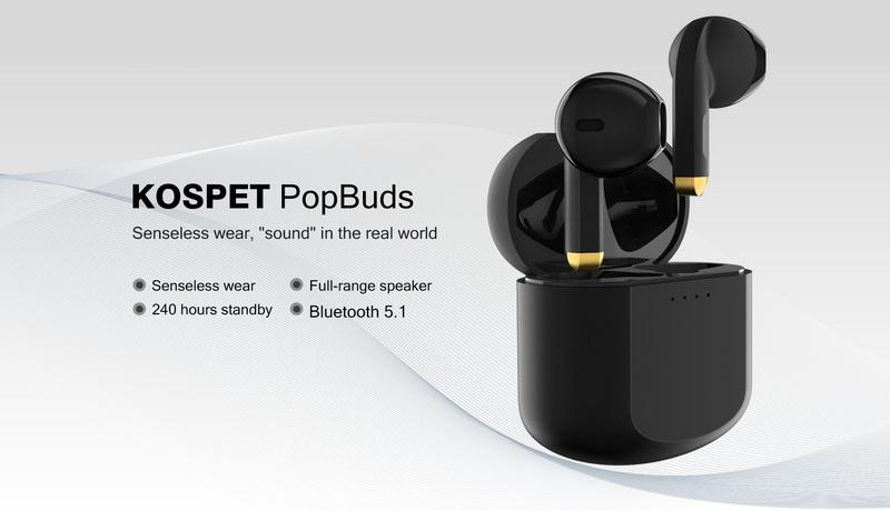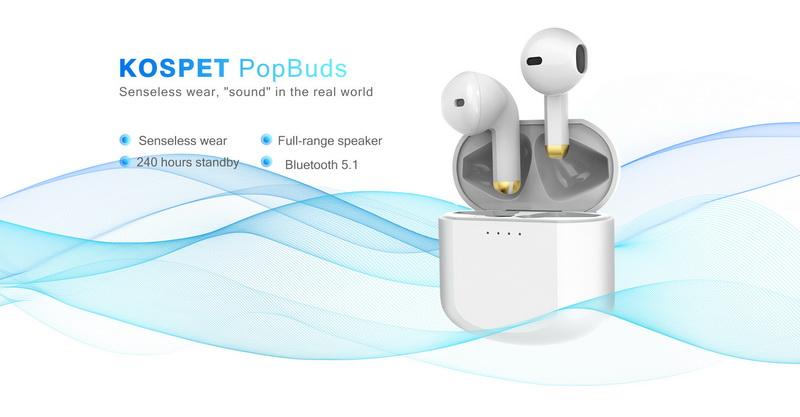 1:Kospet PopBuds Беспроводная bluetooth-гарнитура, дисплей батареи, функция вызова, Спортивная bluetooth-гарнитура