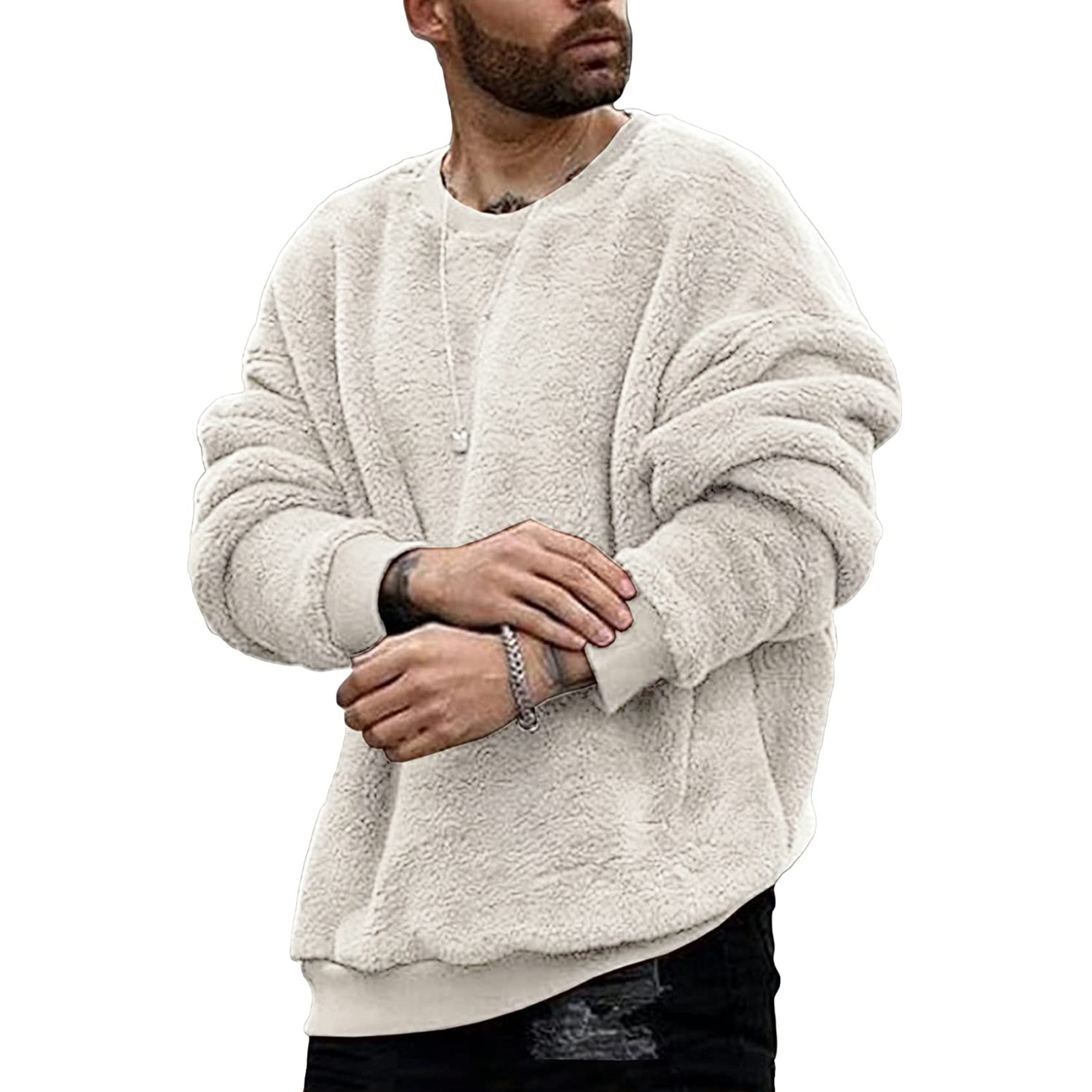 Мужской Пушистый пуловер с круглым вырезом, свитшоты с длинным рукавом, спортивная верхняя одежда с передним карманом на осень и зиму с капюшоном