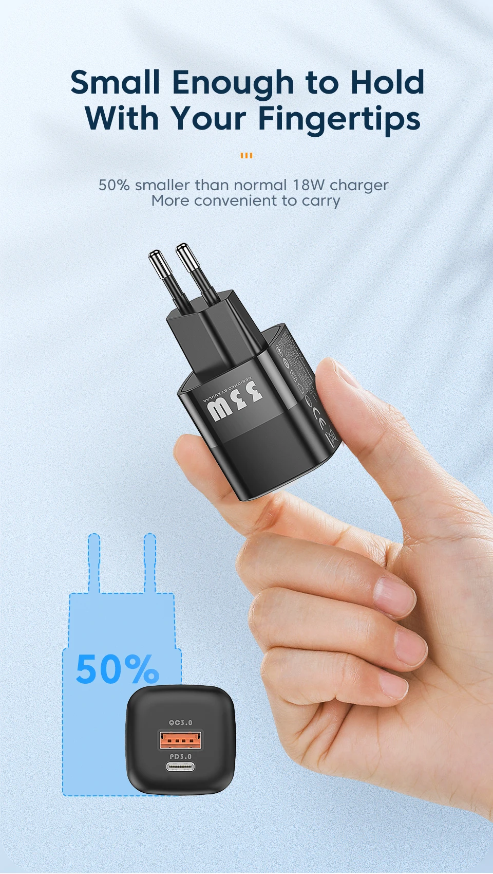 50% меньше, чем обычное зарядное устройство 18 Вт, удобнее носить с собой