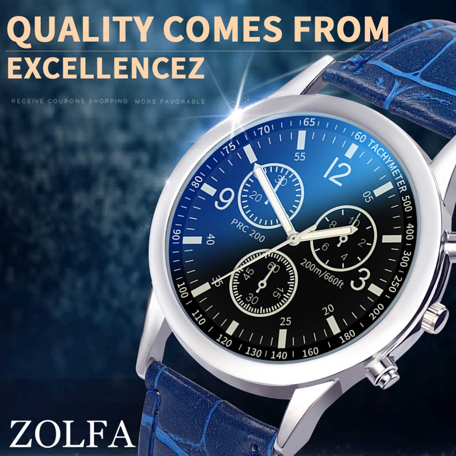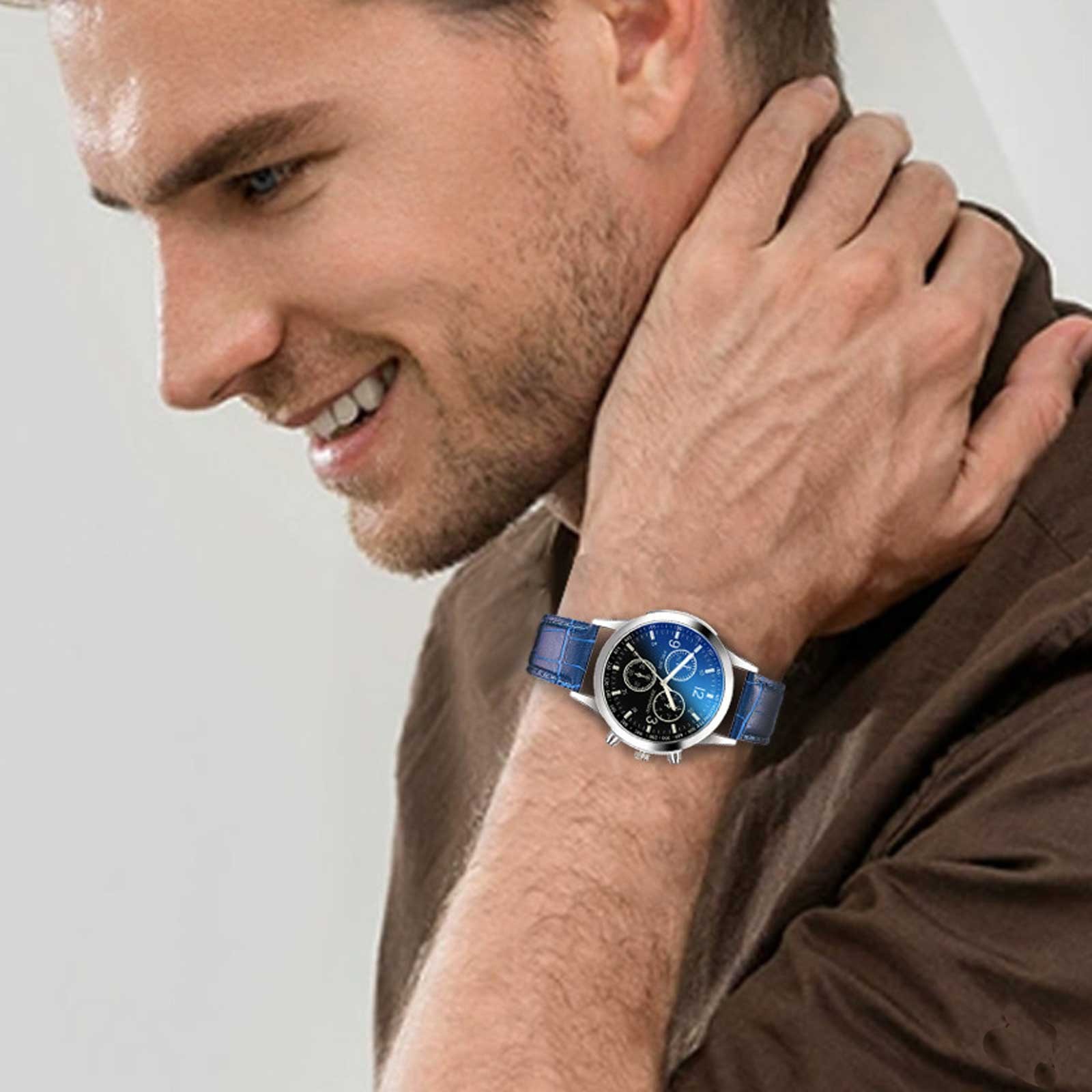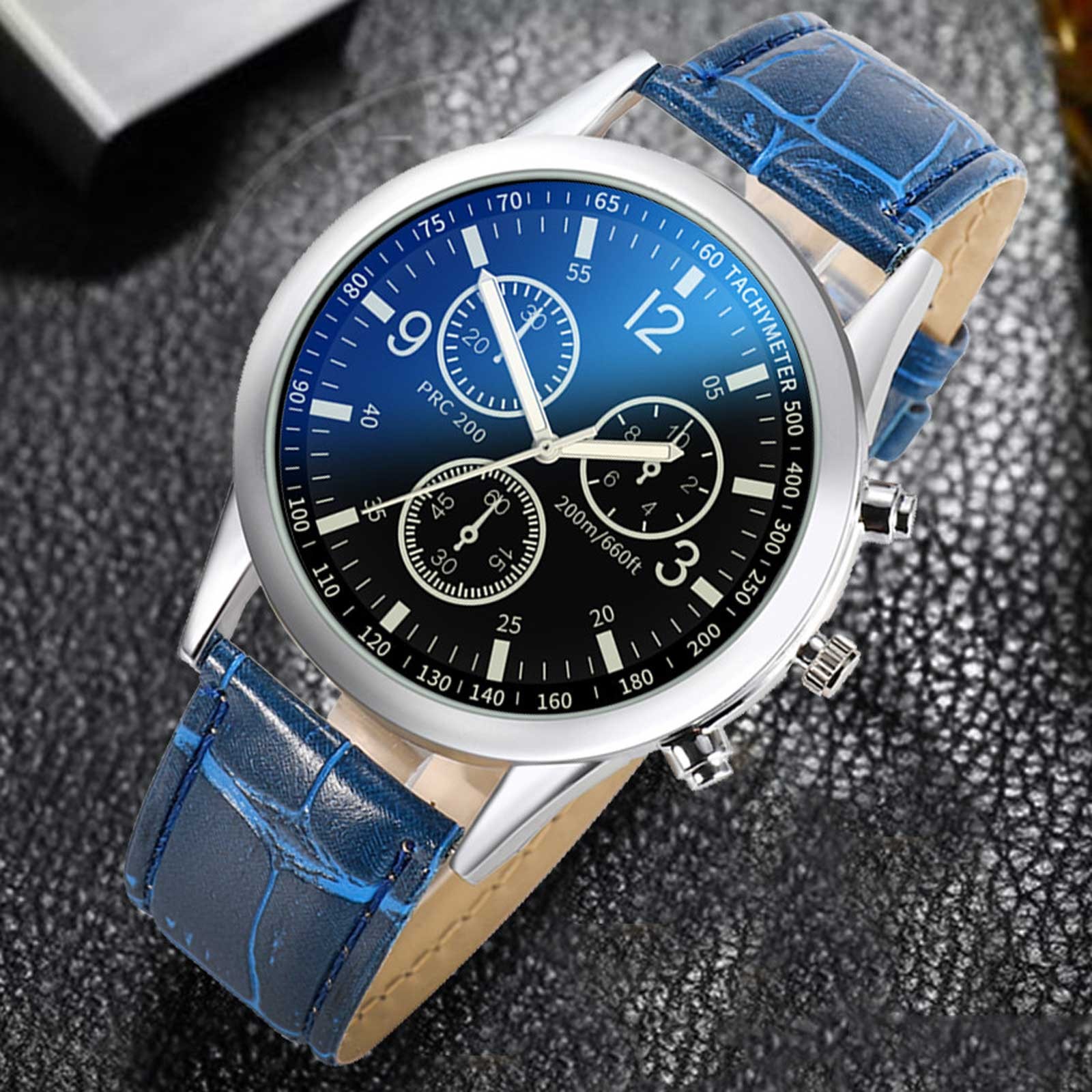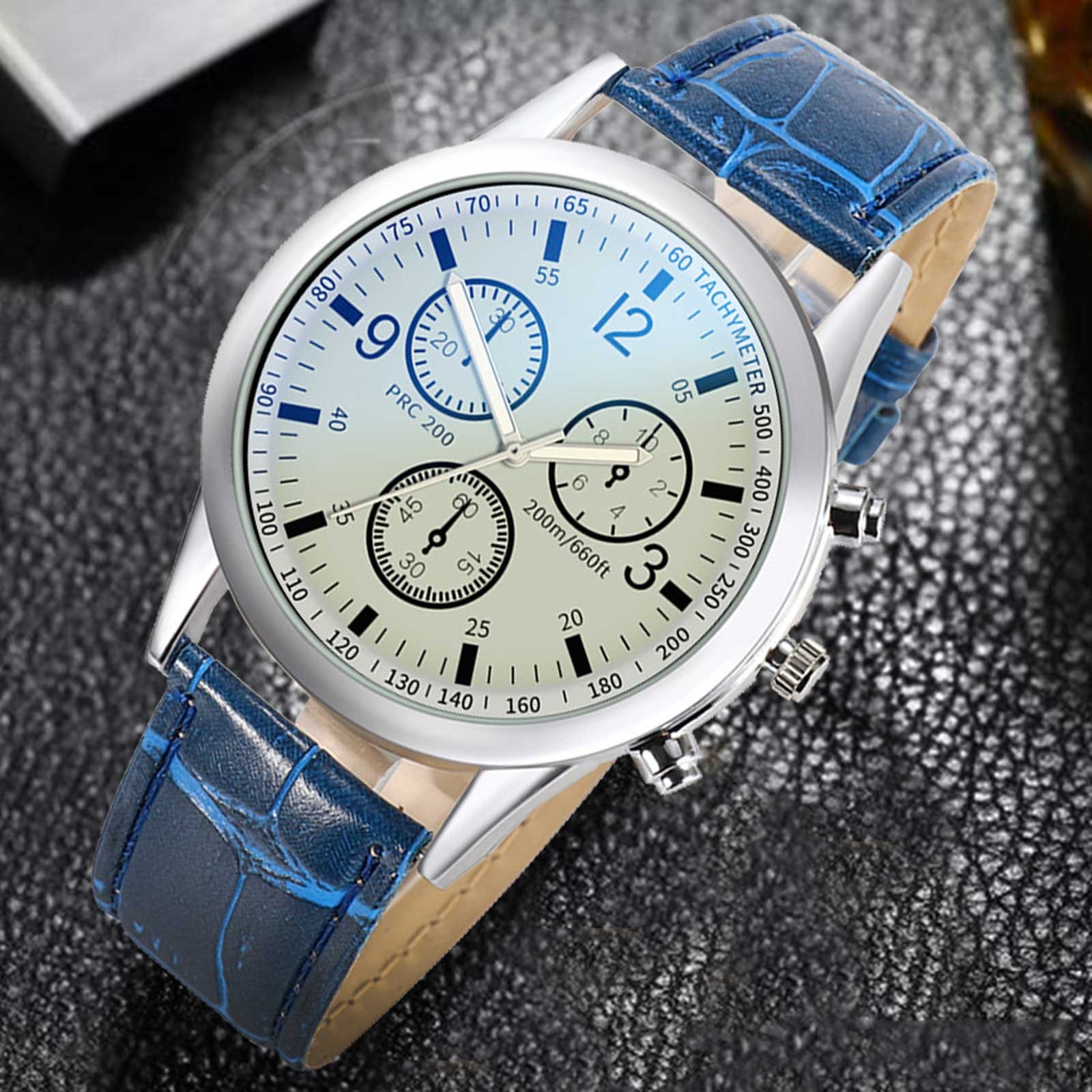 Три глаза часы кварцевые мужские часы синий стеклянный ремень часы мужские