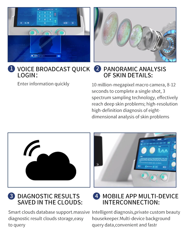 1. 10-megapixel high-definition camera: 10-megapixel 2cm macro camera, fine to pores, image acquisition completed in 8-12 seconds.