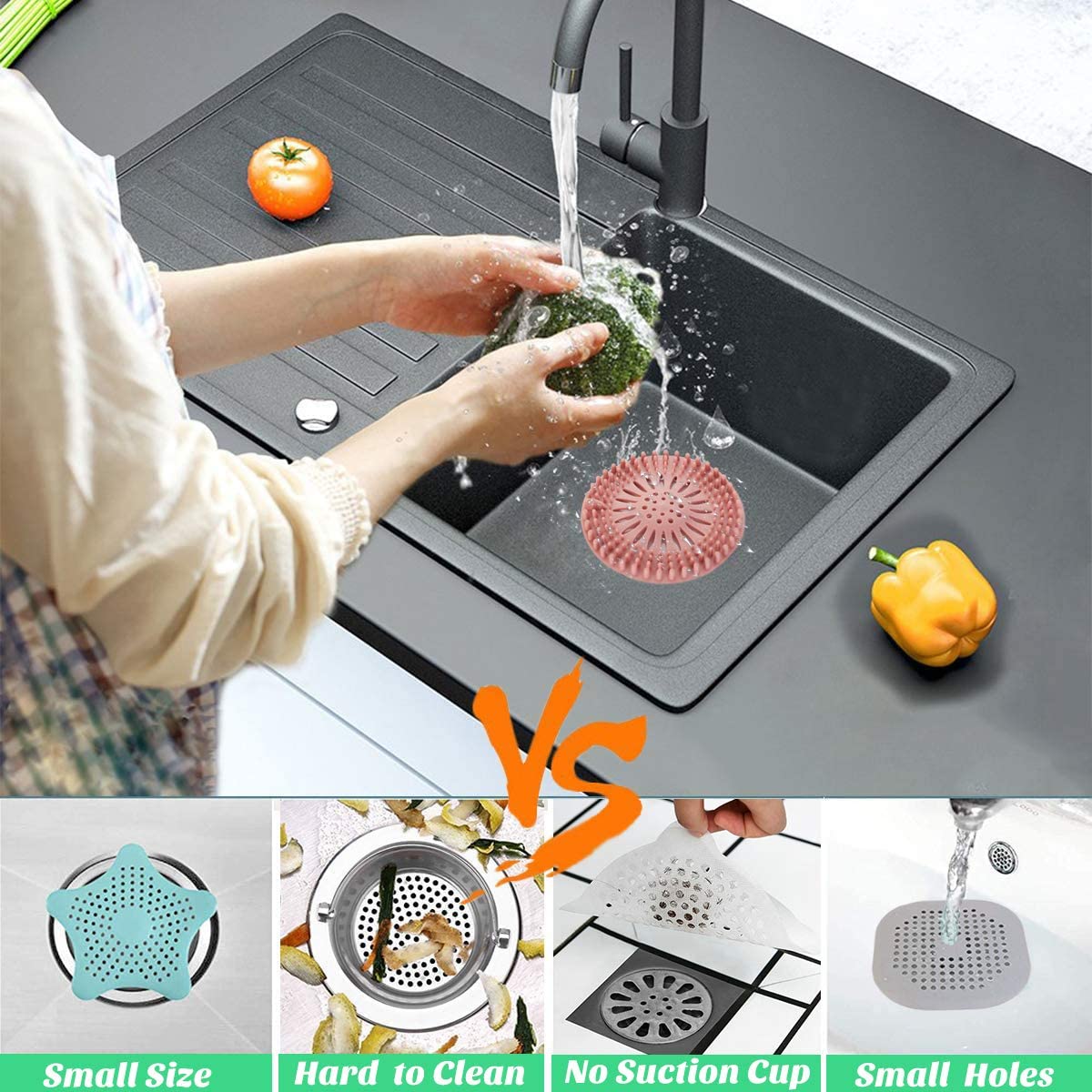 3. Измерение 5,1x5,1 дюйм (ов), наша душа волос Улавливателя стока гарантированно подходит и эффективно покройте свое стоков. Ловушка для слива волос подходит для душевых стоков, кухонных раковин, умывальников, ванн, прачечных стоков и напольные сливы для ванной.