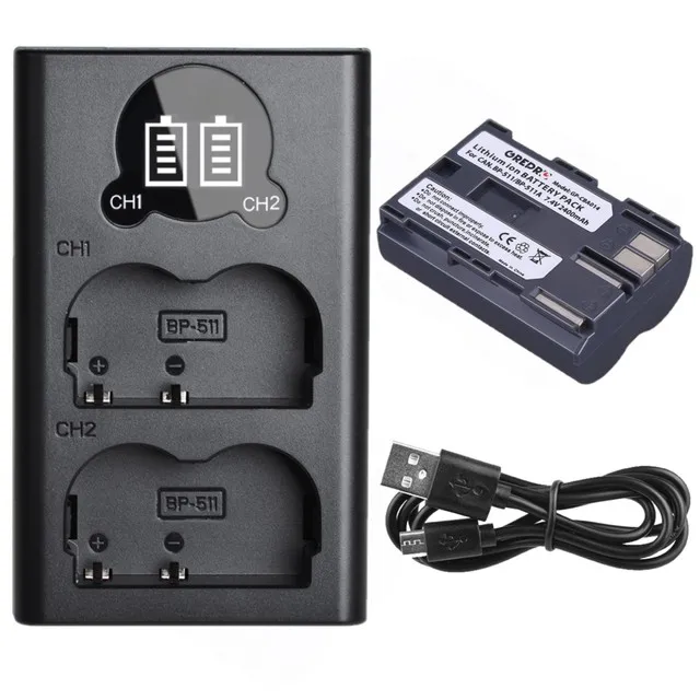 2400 мАч BP-511 батарея + двойное зарядное устройство для Canon EOS 40D 300D 5D 20D 30D 50D 10D D60 G6 BP-511A