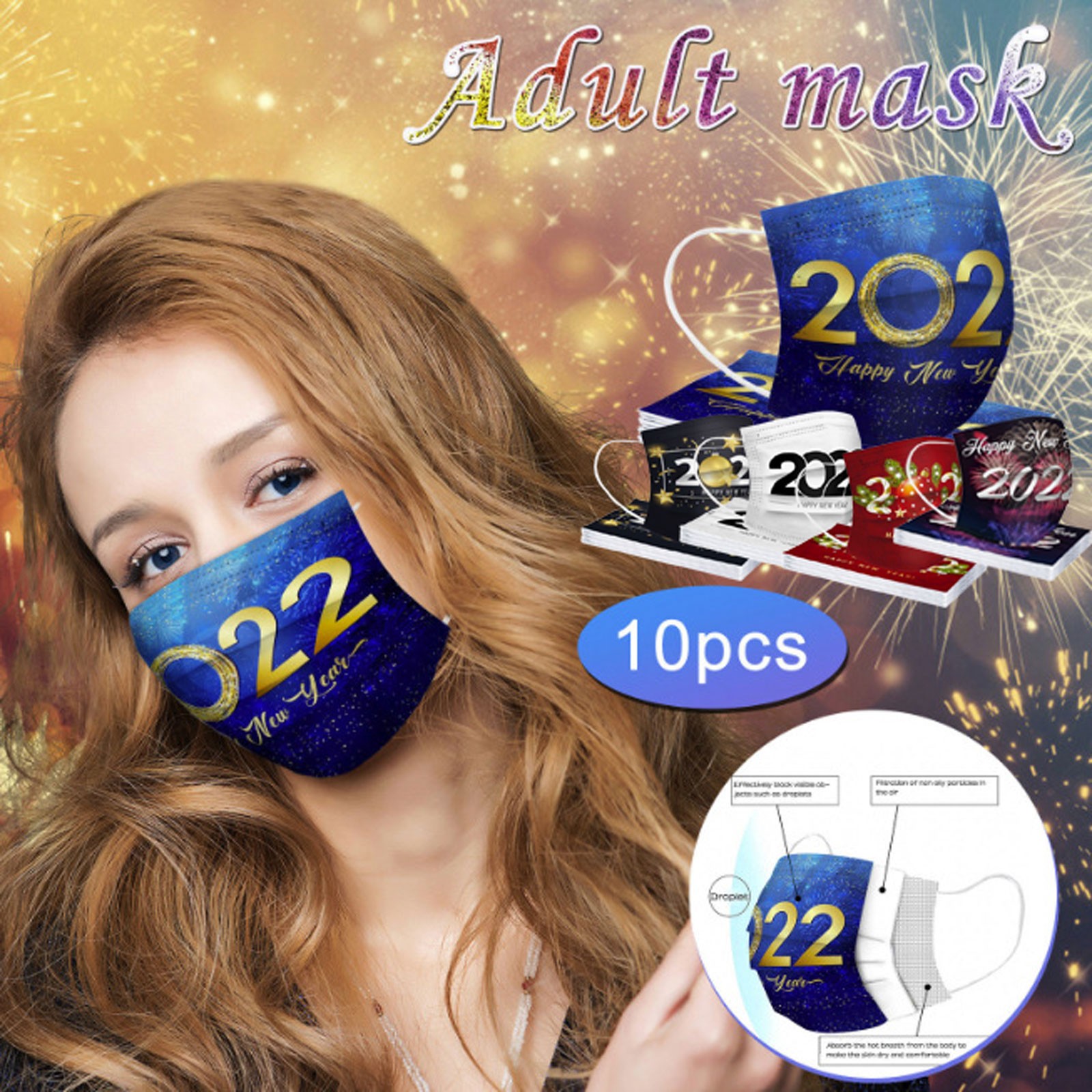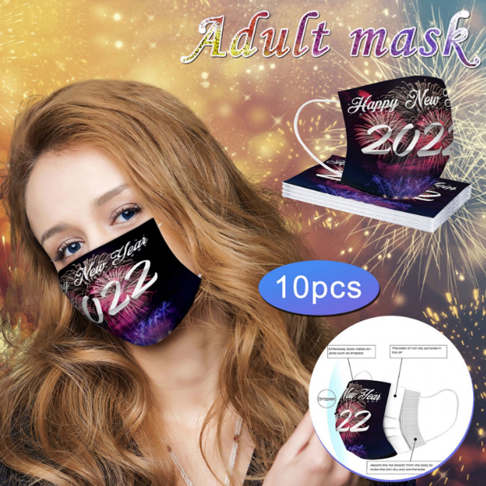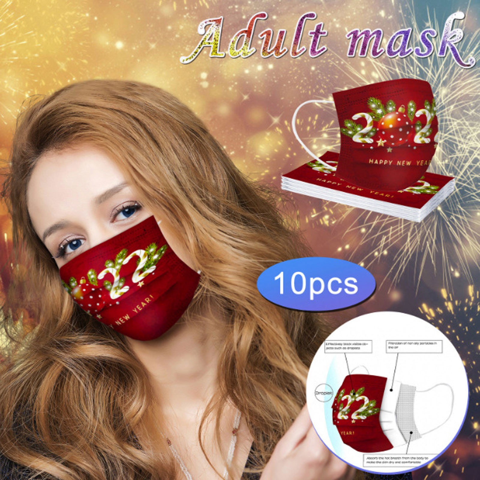 Christmas Disposable Mask, 10pcs Face Masks, Filter Protection For Men & Women
