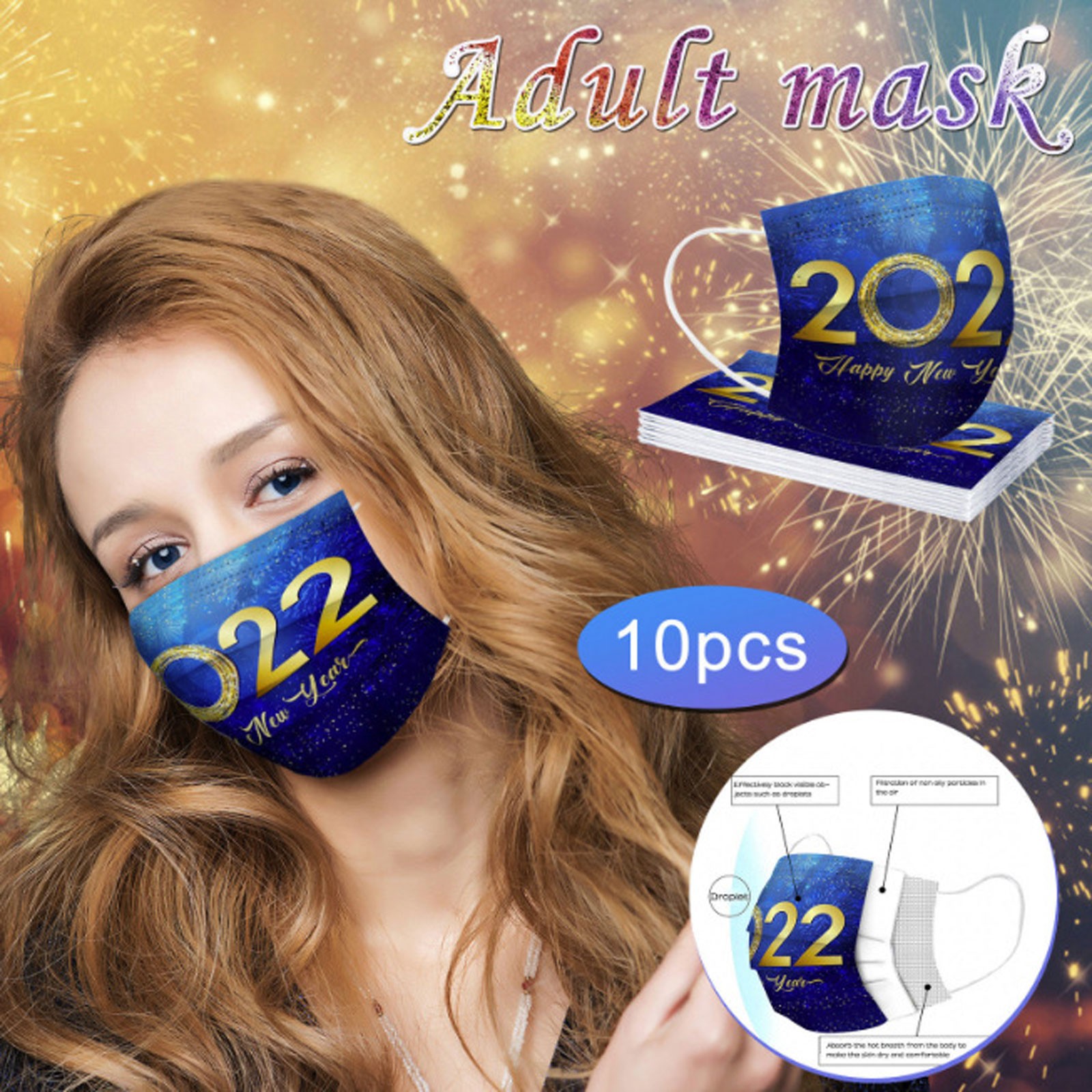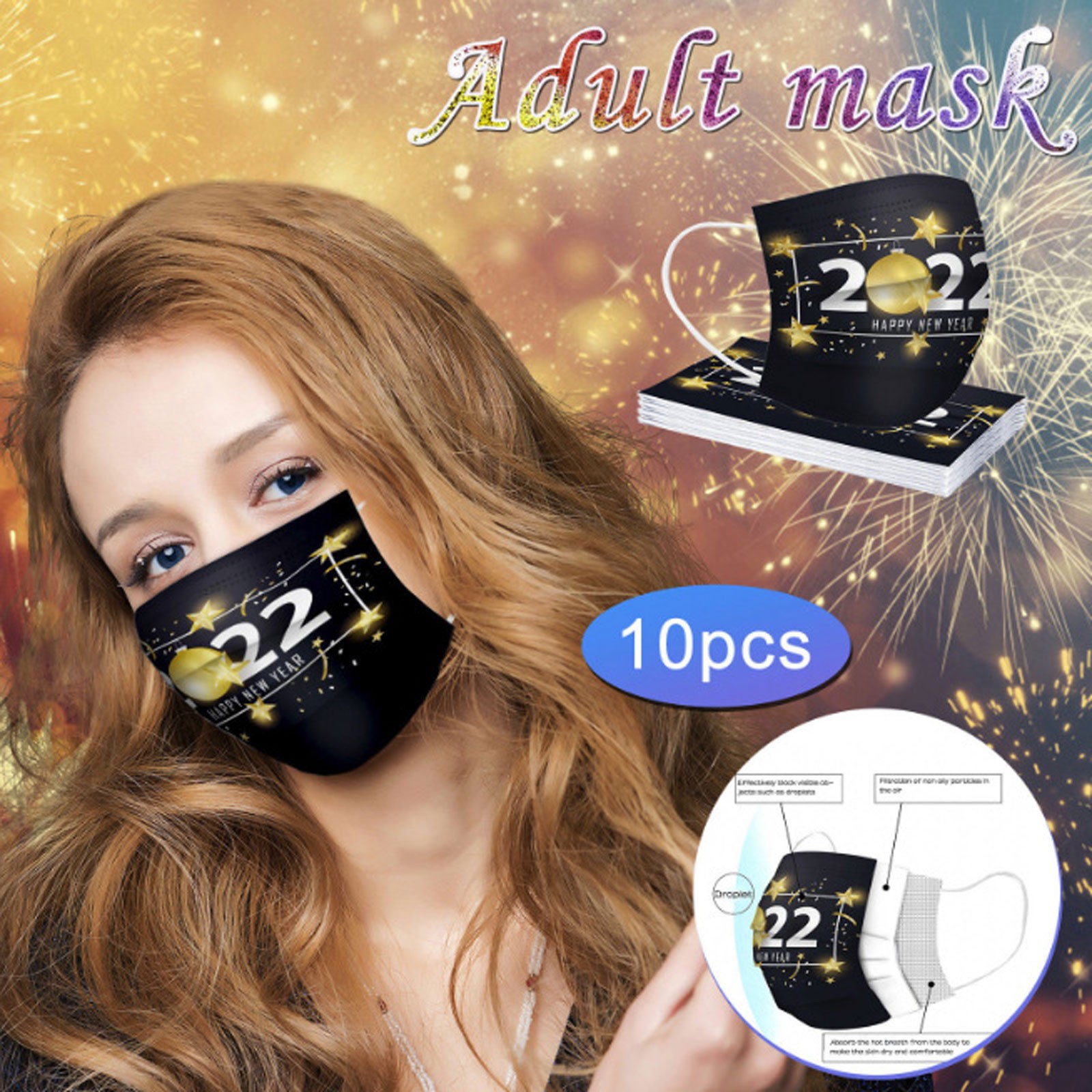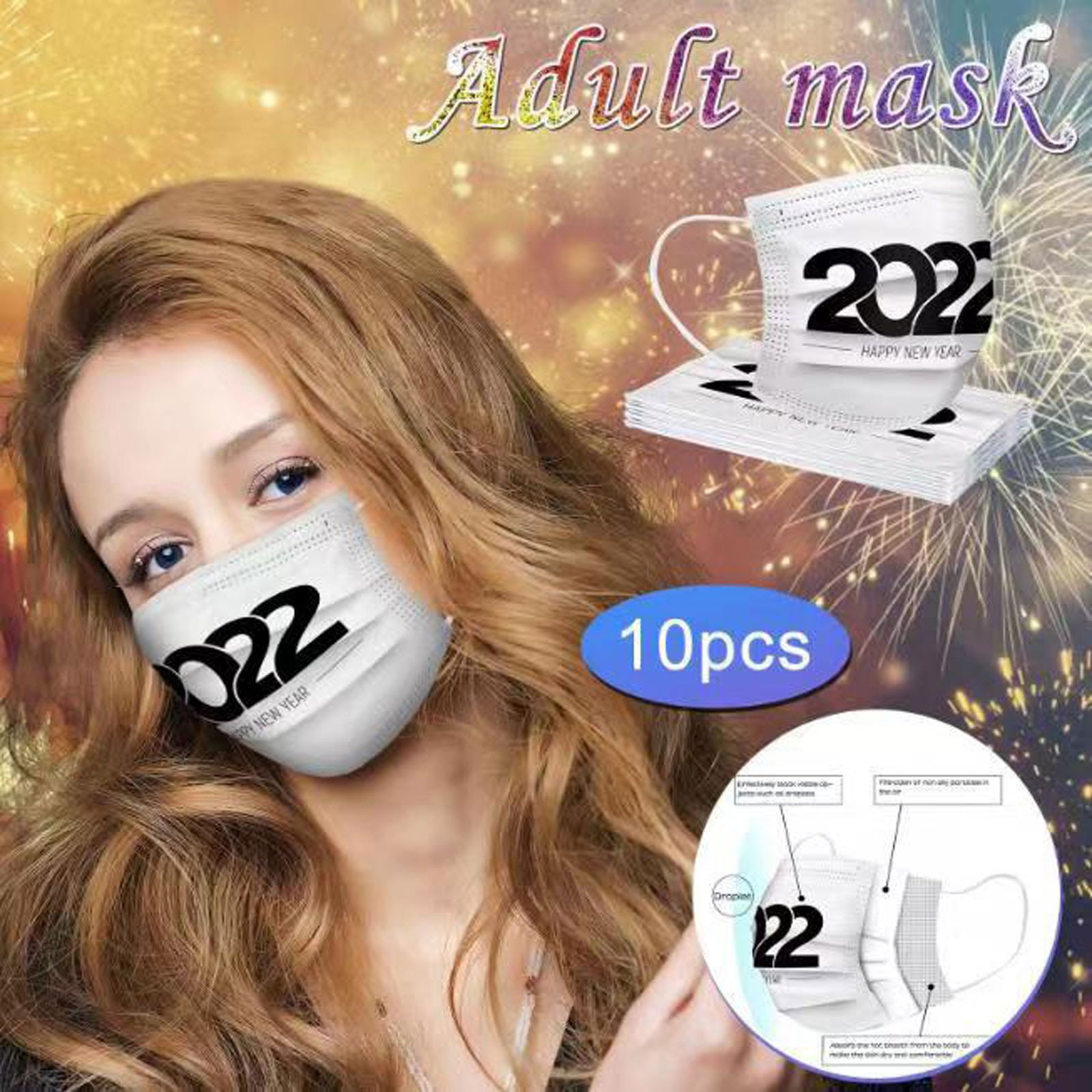 Christmas Disposable Mask, 10pcs Face Masks, Filter Protection For Men & Women