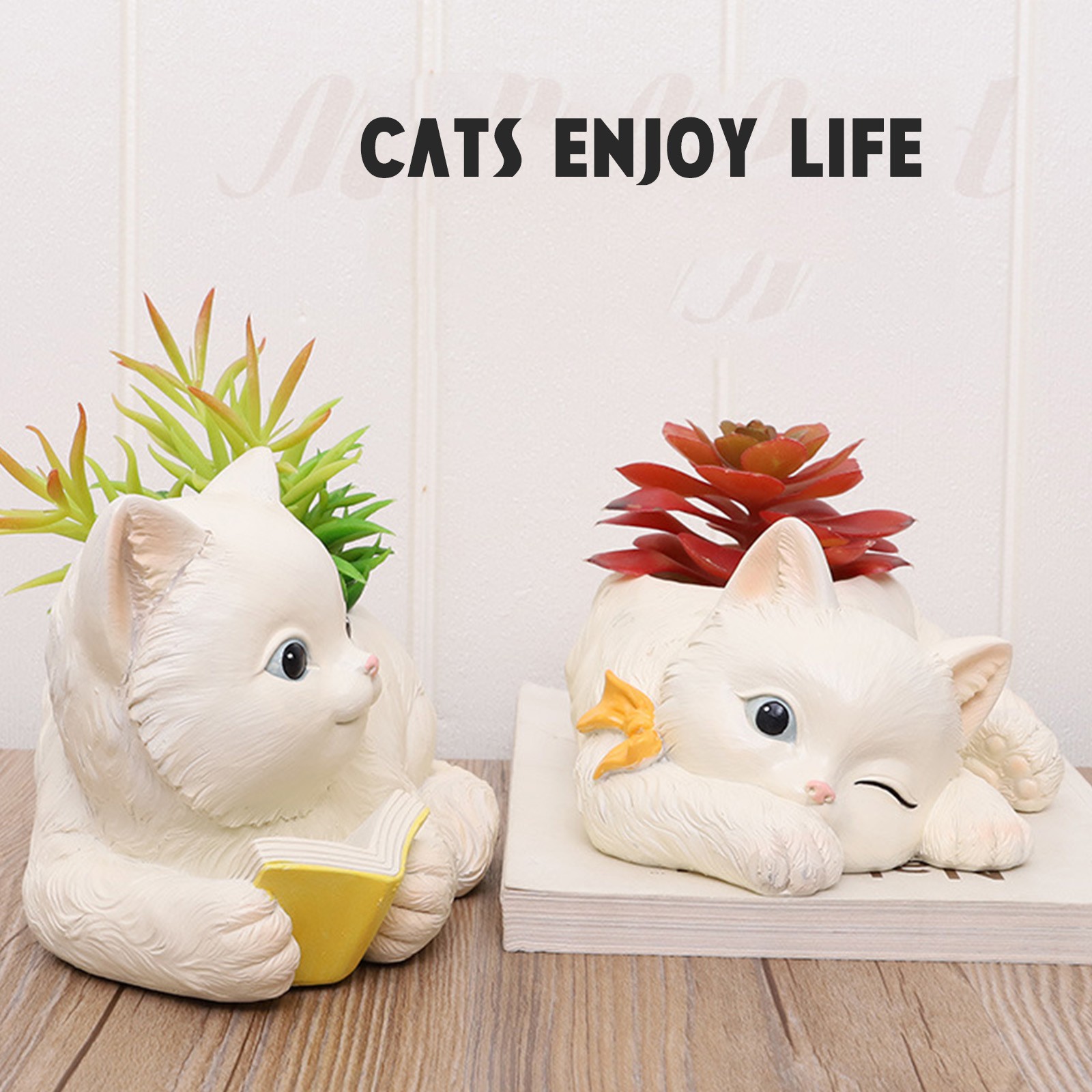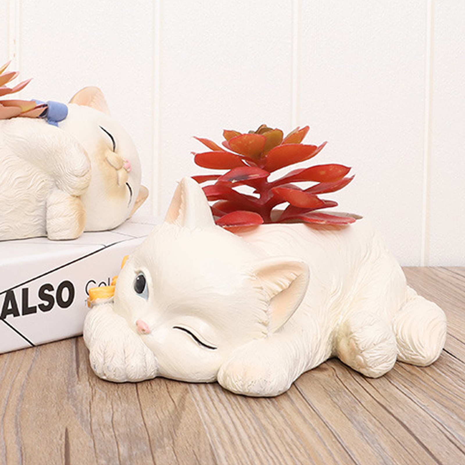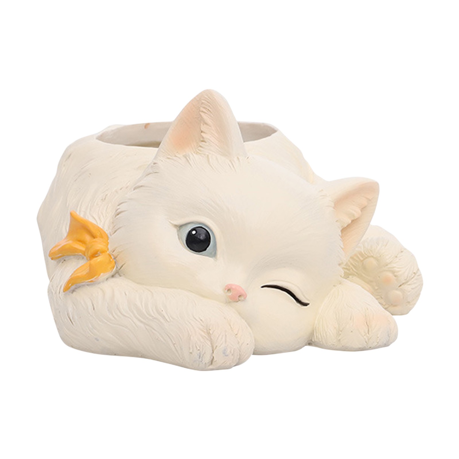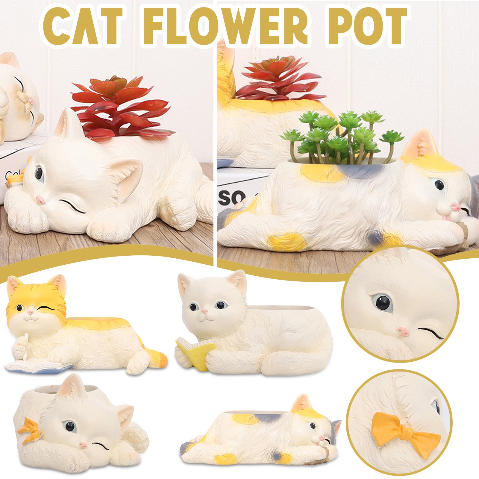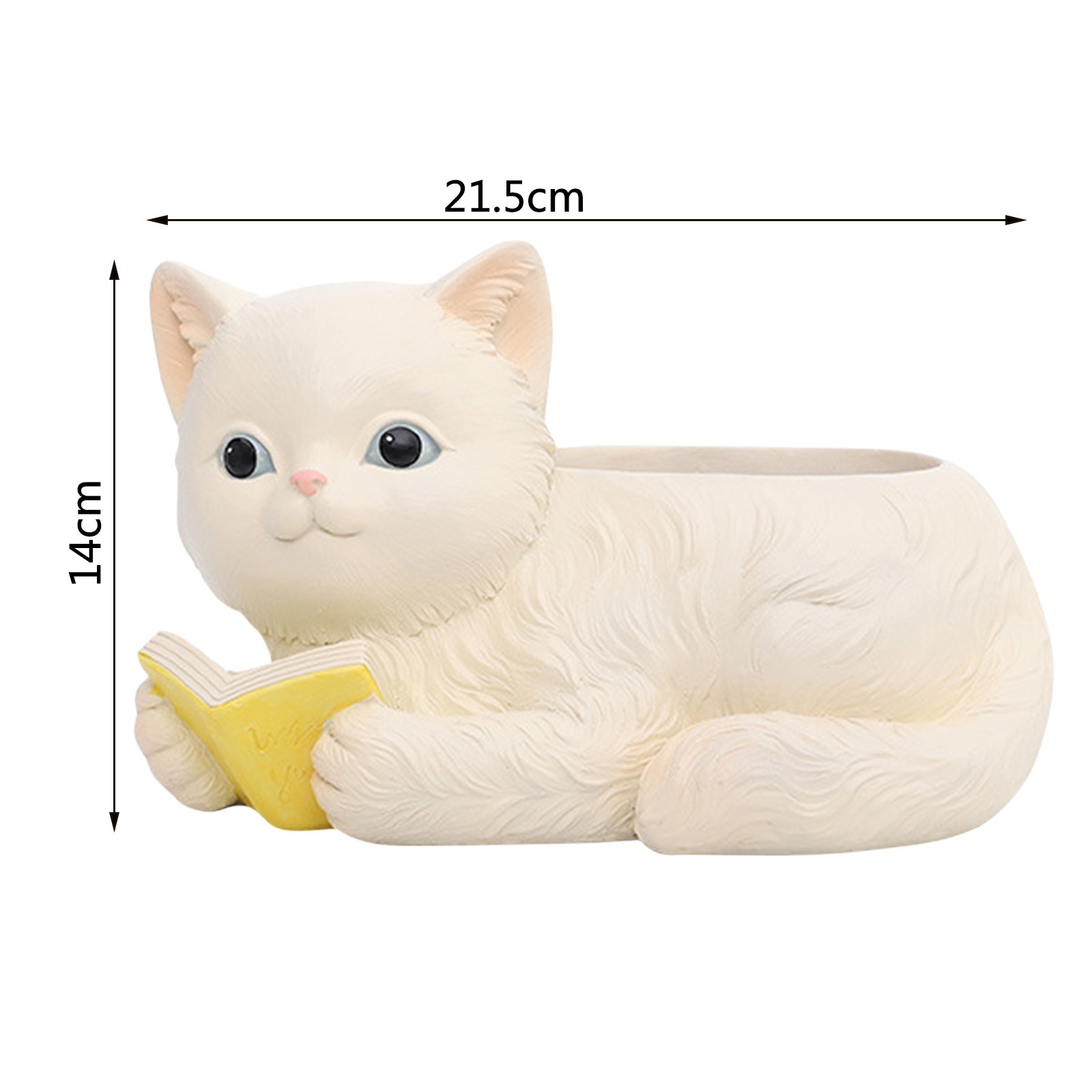 Уникальный дизайн кошки: цветочный горшок из смолы разработан в форме милого кота, очень реалистичный и нежный, с яркими глазами, выглядит как настоящий Кот издалека. Можно не только использовать в качестве цветочного горшка, но и в качестве украшения стола, что делает ваш рабочий стол уникальным и может хранить некоторые мелкие предметы, держать ваш стол чистым и аккуратным