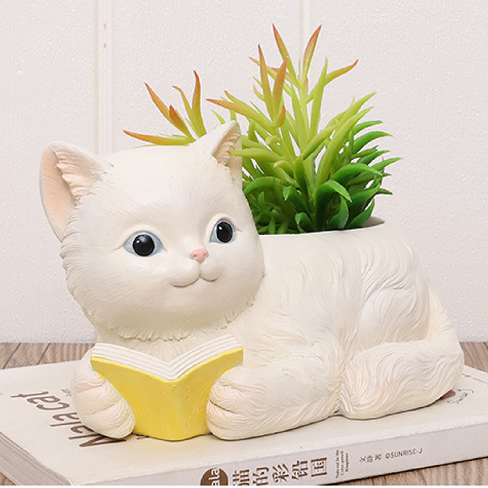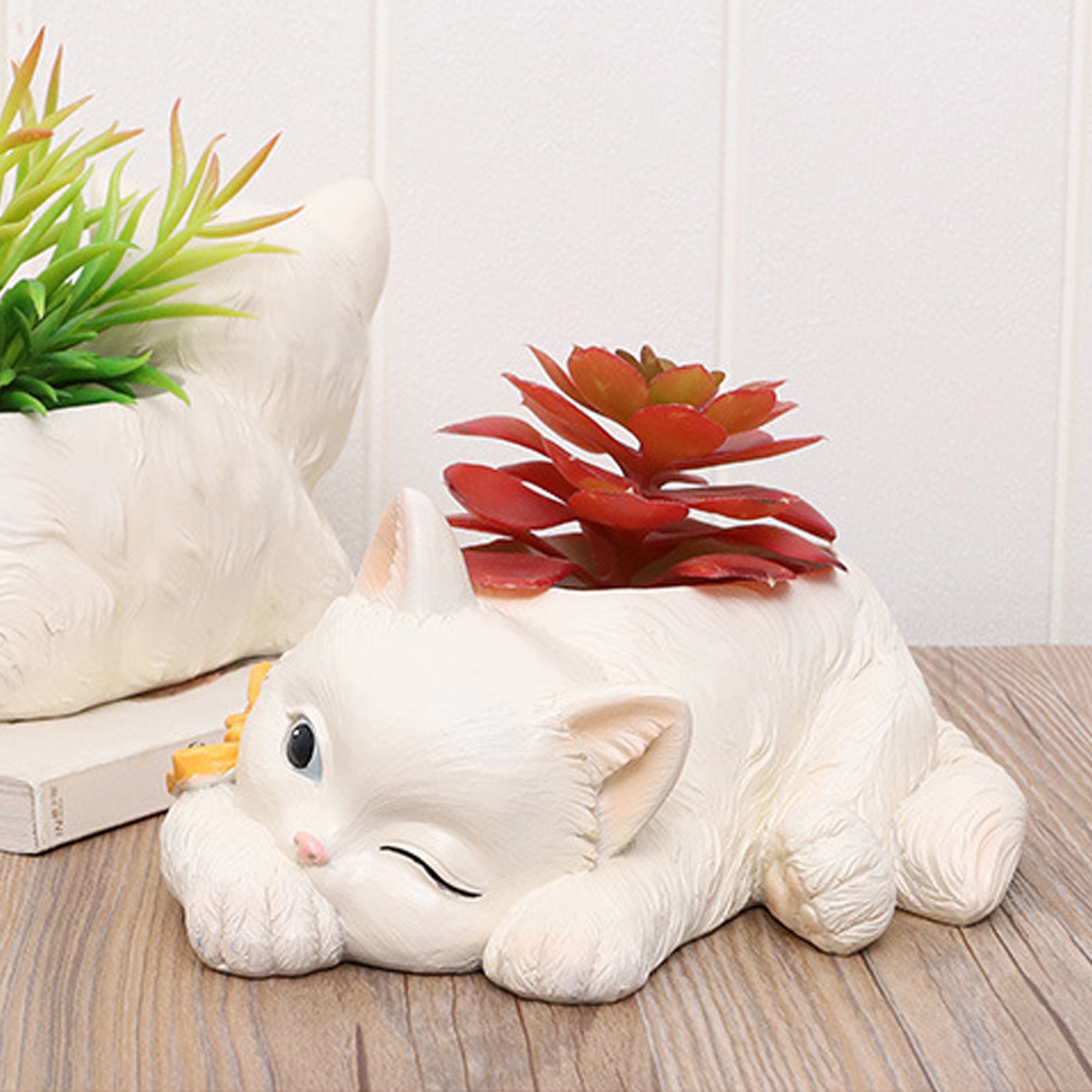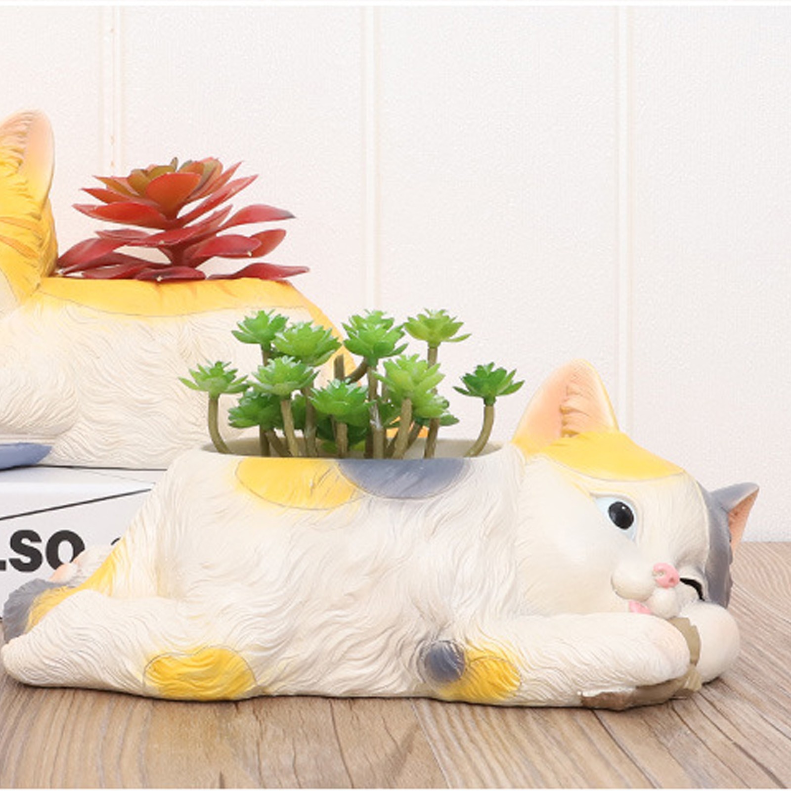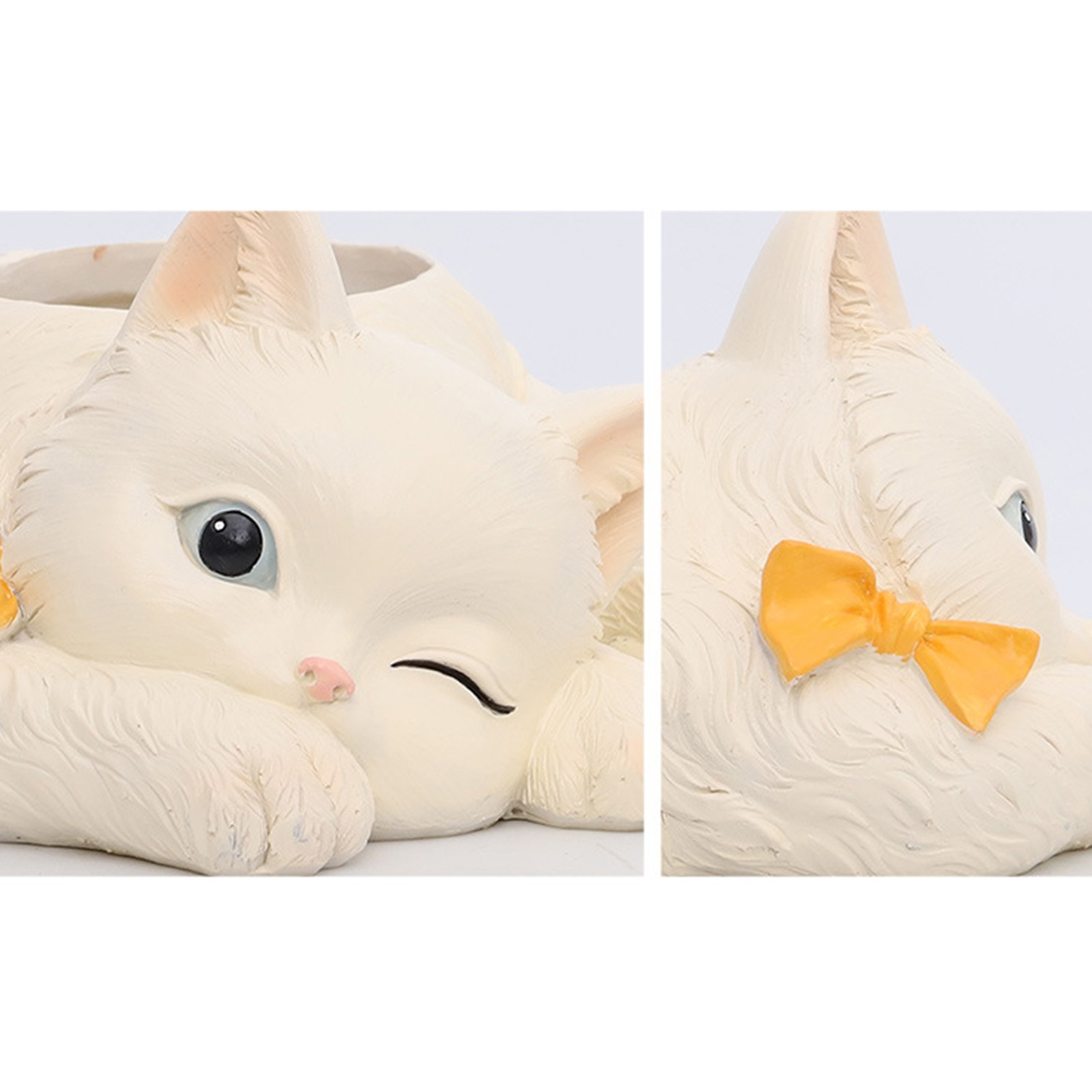 Уникальный дизайн кошки: цветочный горшок из смолы разработан в форме милого кота, очень реалистичный и нежный, с яркими глазами, выглядит как настоящий Кот издалека. Можно не только использовать в качестве цветочного горшка, но и в качестве украшения стола, что делает ваш рабочий стол уникальным и может хранить некоторые мелкие предметы, держать ваш стол чистым и аккуратным