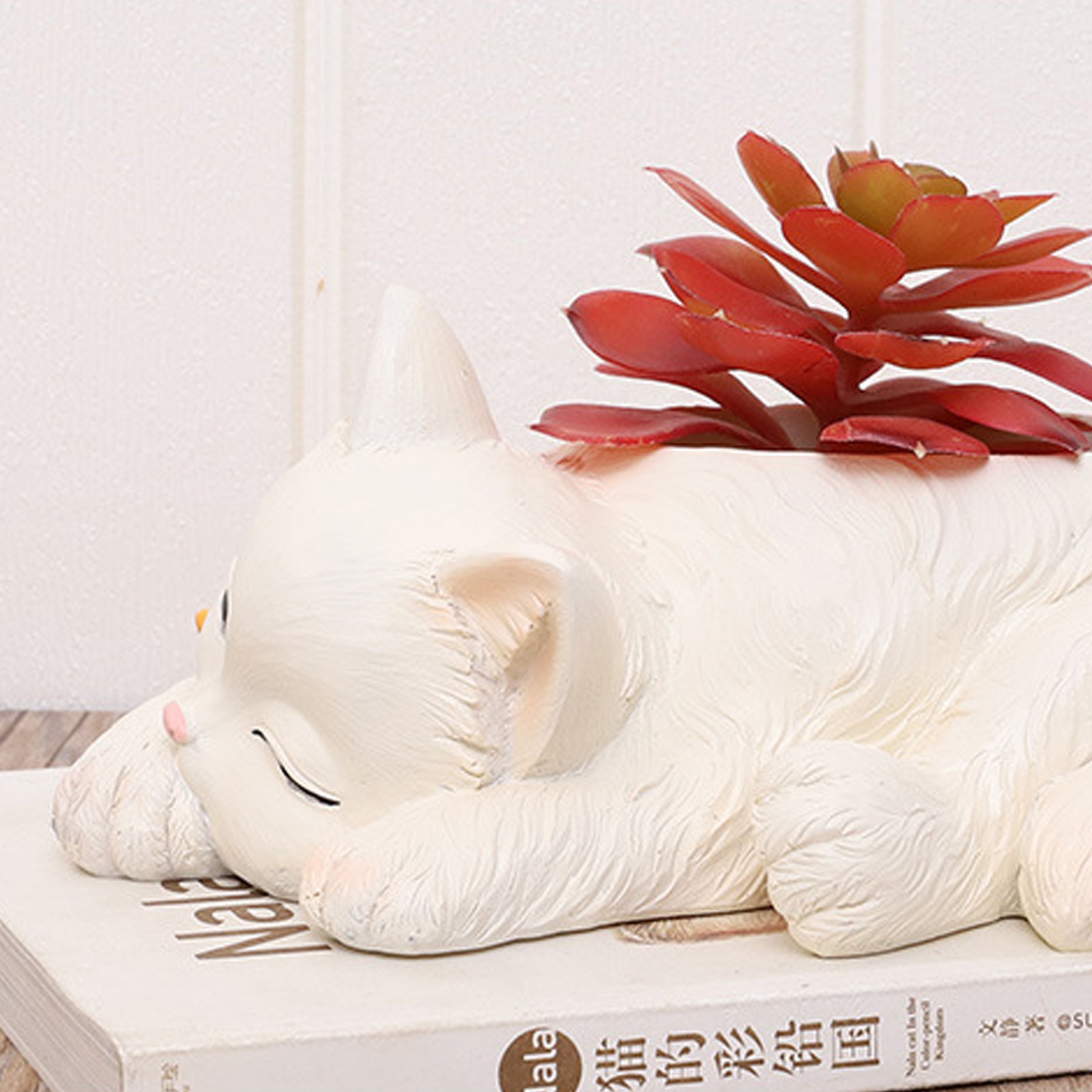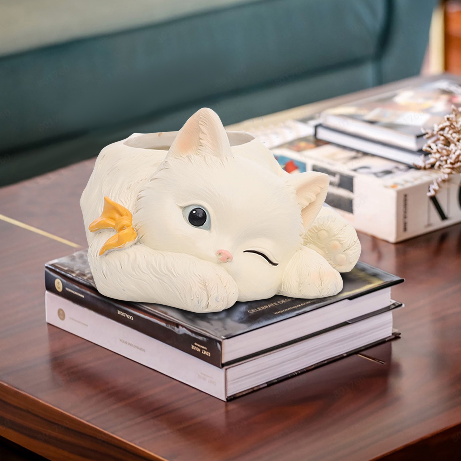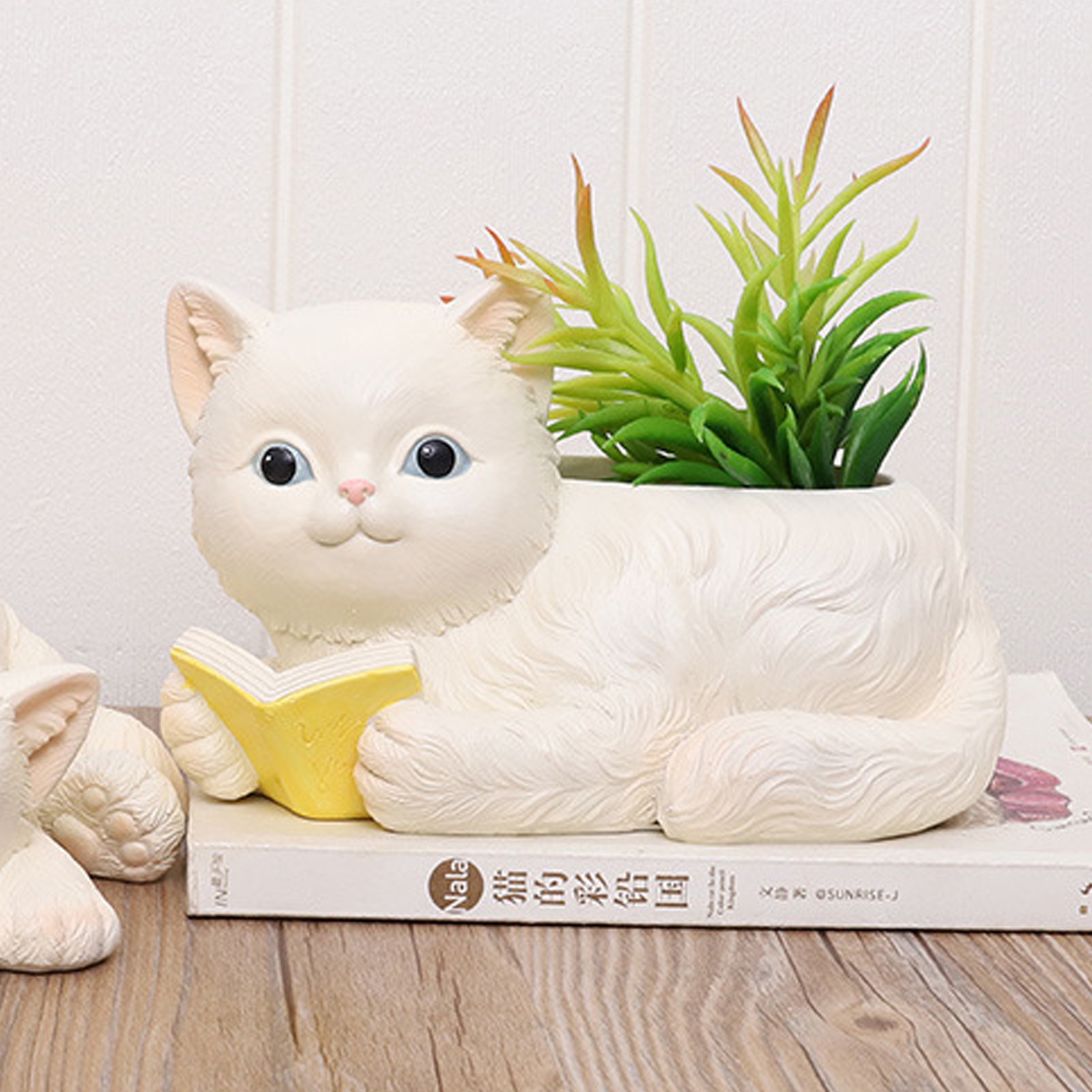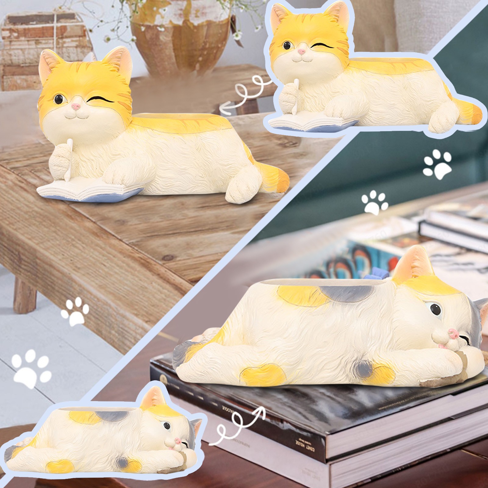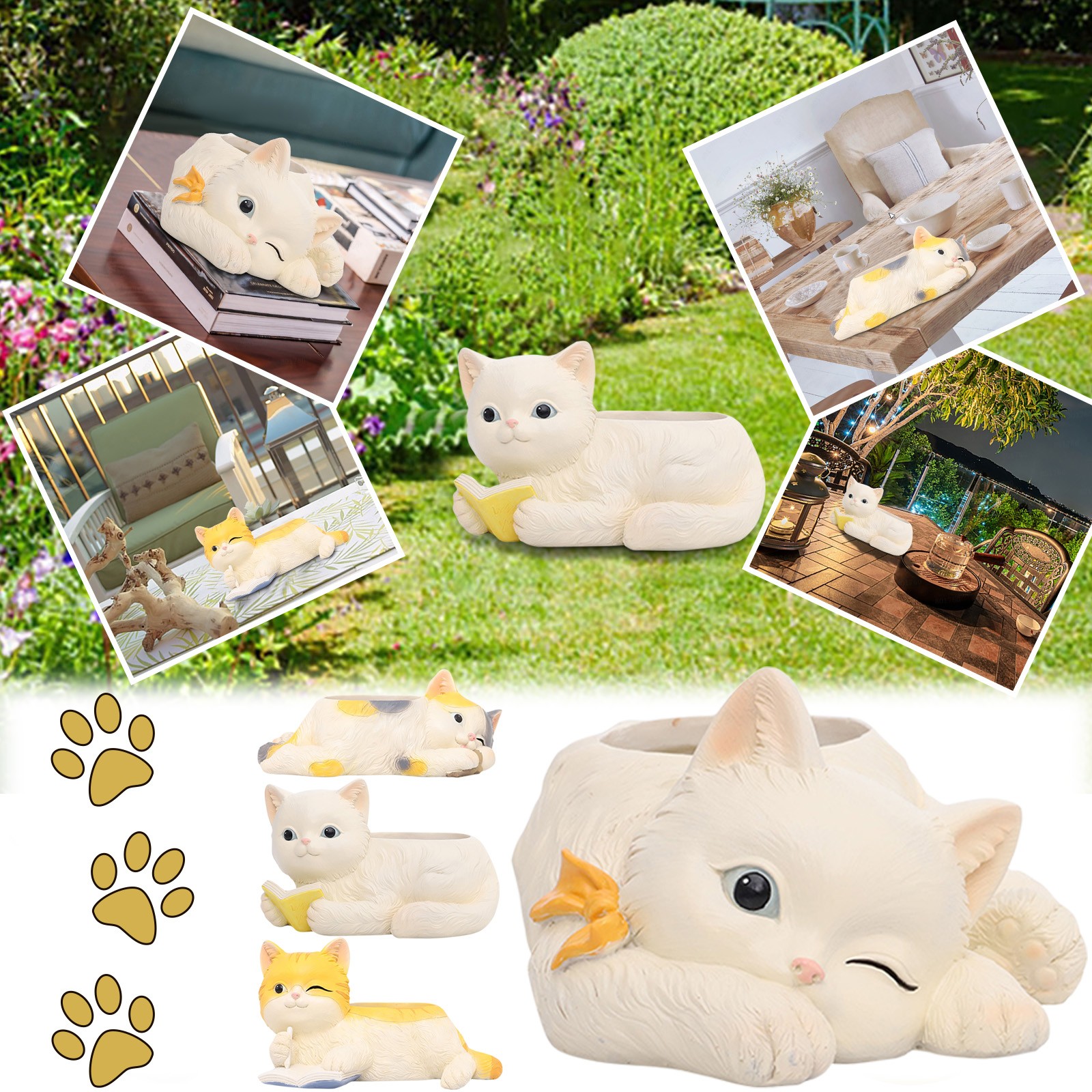 Уникальный дизайн кошки: цветочный горшок из смолы разработан в форме милого кота, очень реалистичный и нежный, с яркими глазами, выглядит как настоящий Кот издалека. Можно не только использовать в качестве цветочного горшка, но и в качестве украшения стола, что делает ваш рабочий стол уникальным и может хранить некоторые мелкие предметы, держать ваш стол чистым и аккуратным