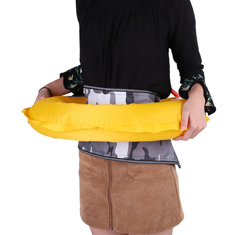 Материал высокого качества отличается высокой прочностью и износостойкостью. Регулируемый ремешок подходит для всех размеров талии. Оснащен светоотражающими лентами для видимости в ночное время, свистком для аварийной ситуации и Красной трубкой для ручной воздушной зарядки. Многоразовые, моющиеся, удобные, легко сушить на воздухе. Надувает около 5 секунд, когда пользователь вручную тянет ручку надувания. Обеспечивает полную свободу движений при парусном спорте, рыбалке, охоте, гребле на плоской воде, стоянии на Весле (SUP), прогулочном гребле и т. д.Спецификация: