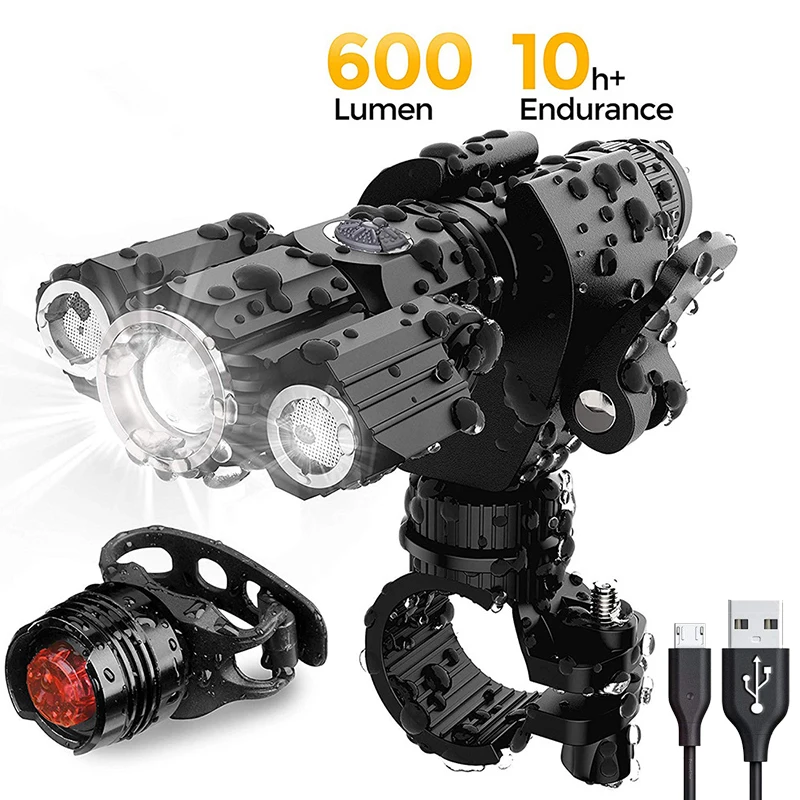 -Передний велосипедный светильник 500 лм-это тройной светодиодный светильник с 4 режимами, которые достаточно яркие, чтобы осветить ваш путь на Неосвещенных дорогах. Дополнительный задний светильник гарантирует, что вы заметили сзади. Этот гениальный велосипедный светильник увеличит вашу способность видеть, а также пчелу, видимую другими.