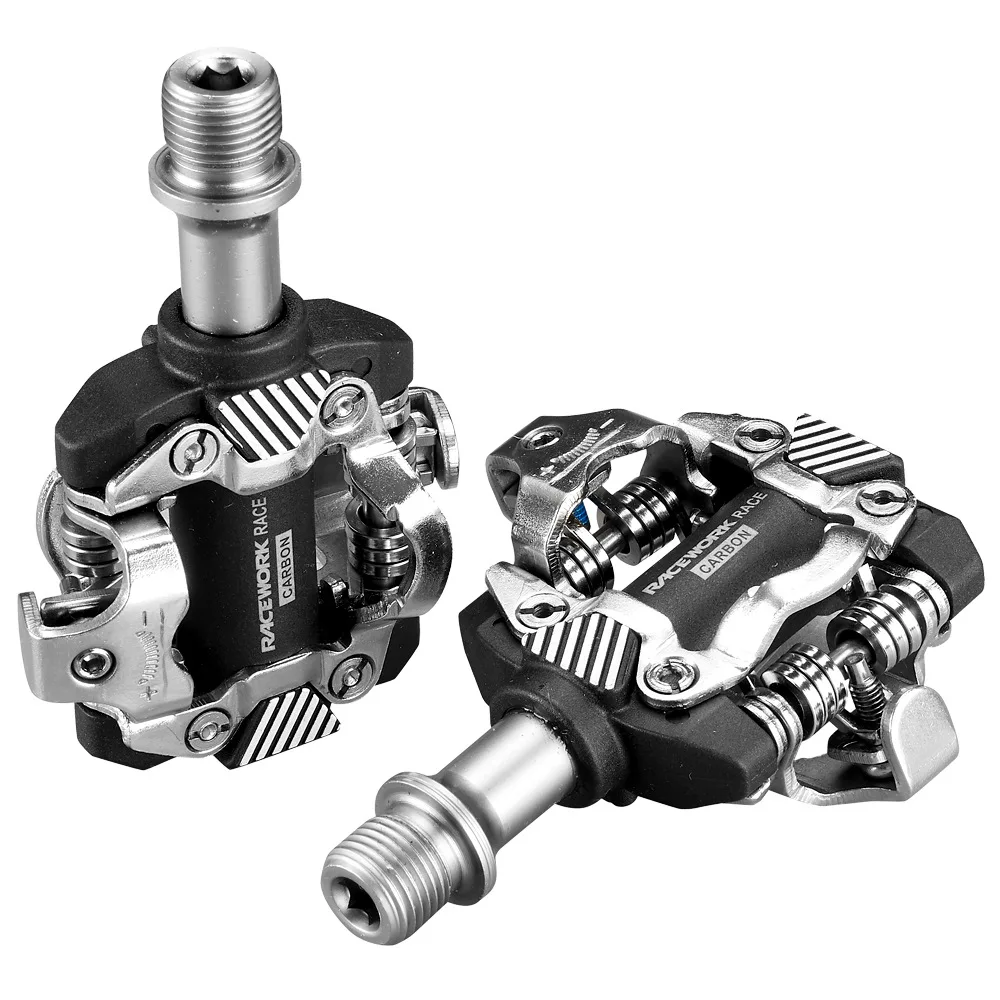 Двусторонний механизм нажатия педалей RACEWORK X-M8100 педалей работает даже в самых неблагоприятных условиях. Хромированная стальная платформа разработана так, что она имеет очень хорошую самоочистку в грязных условиях. Твердость педали может быть легко отрегулирована между 6 и 10 ньютонными метрами с помощью шестигранного винта для индивидуальных нужд. Благодаря компактному дизайну педалей они очень прочные и могут легко выдерживать случайные заплаты. Несмотря на их прочность и большую площадь контакта, вес остается относительно низким благодаря углеродная основа. 30% углерод и 70% процесс впрыска клик механизм совместим со всеми Шимано SPD (MTB) бутсы.