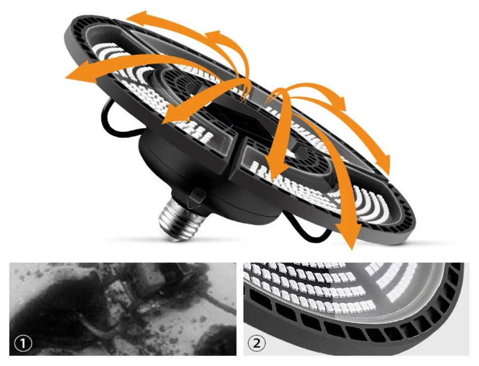 2. Светодиодный светильник для деформации: алюминиевый теплоотвод в 3 раза больше, чем у пластиковых ламп, с высокой термостойкостью, хорошей изоляцией и более безопасным использованием