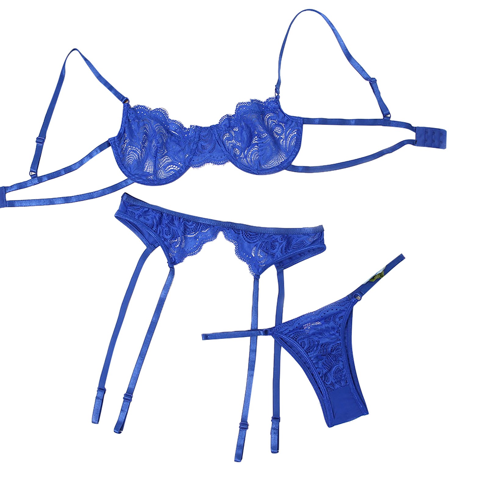 Женское сексуальное нижнее белье, кружевные стринги, нижнее белье, ночное белье, бюстгальтер со стальным кольцом, стринги, 3 шт., костюм