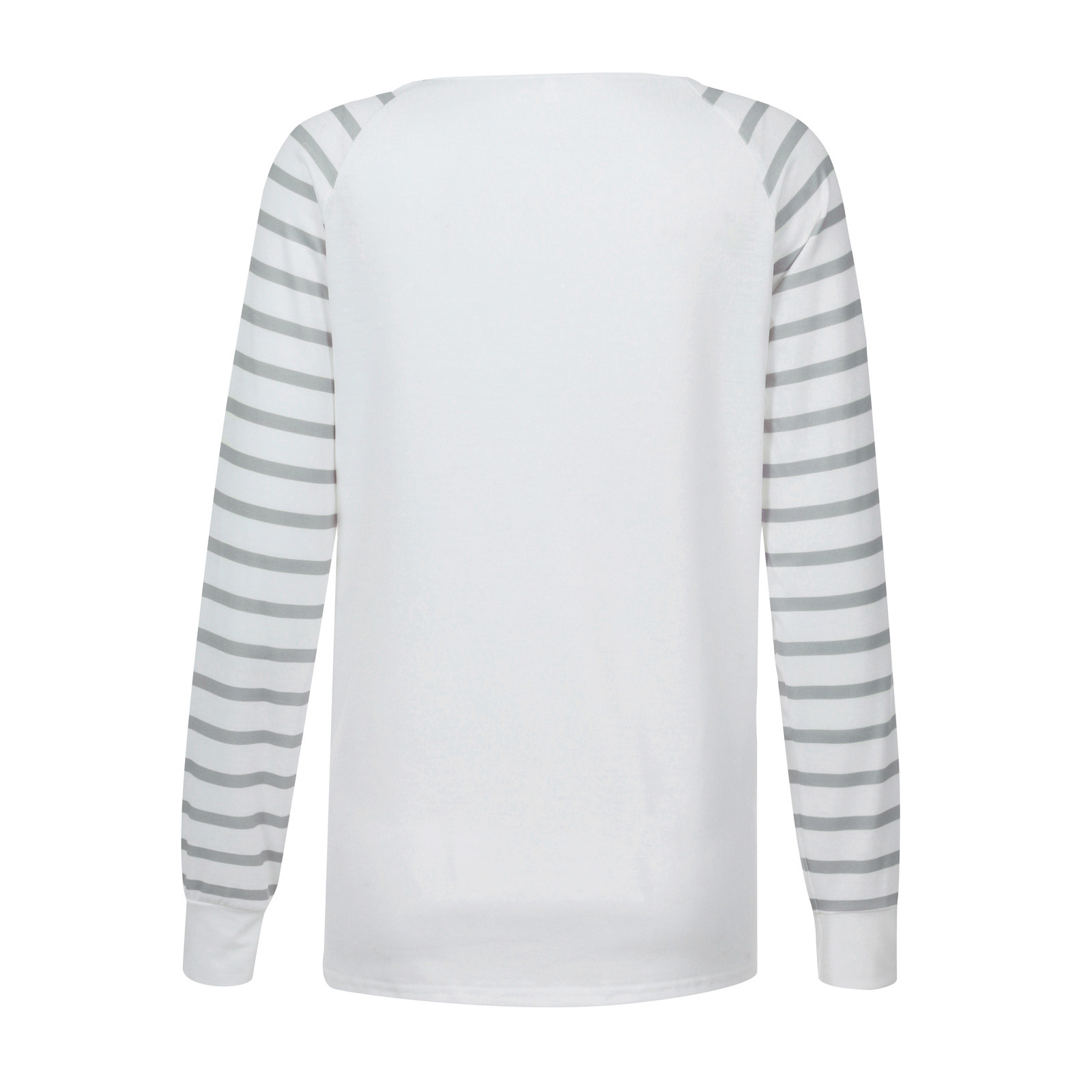 Женская Весенняя мода с v-образным вырезом в полоску свободная Лоскутная Блузка с принтом топы пуловер